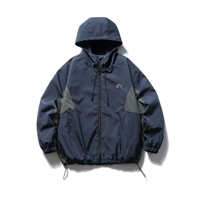 트렌디 한 외부 2024 봄 일본 스타일 레트로 야외 기능성 자켓 남성용 트렌디 한 컬러 스티칭 자수 후드 자켓