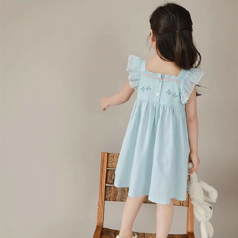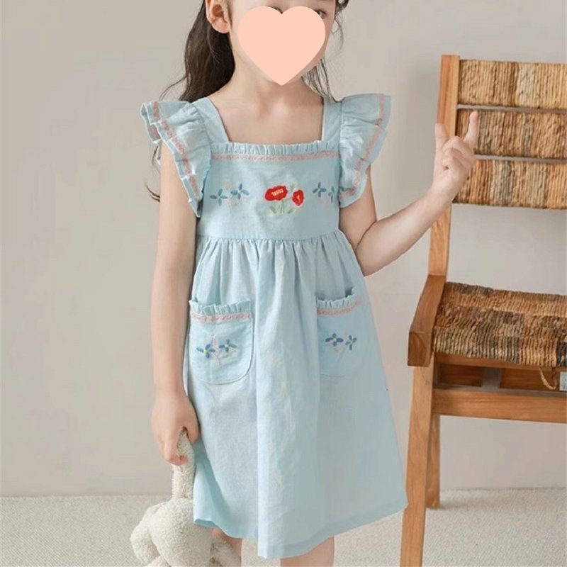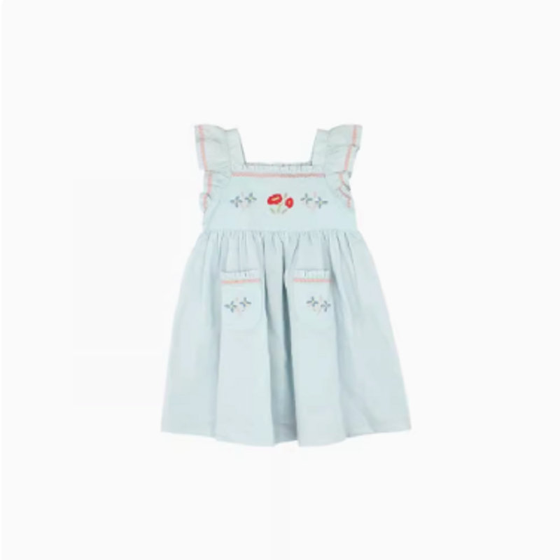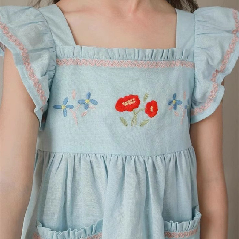 여아용 자수 드레스, 더블 포켓 공주 드레스, 2025 여름 신상품, 수출용 아동복, 3-8세용스토어 가기