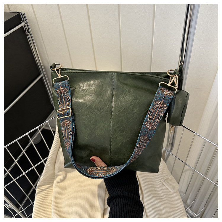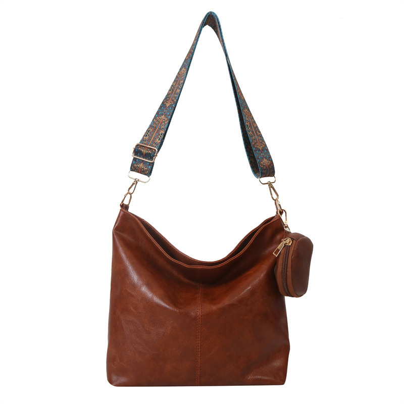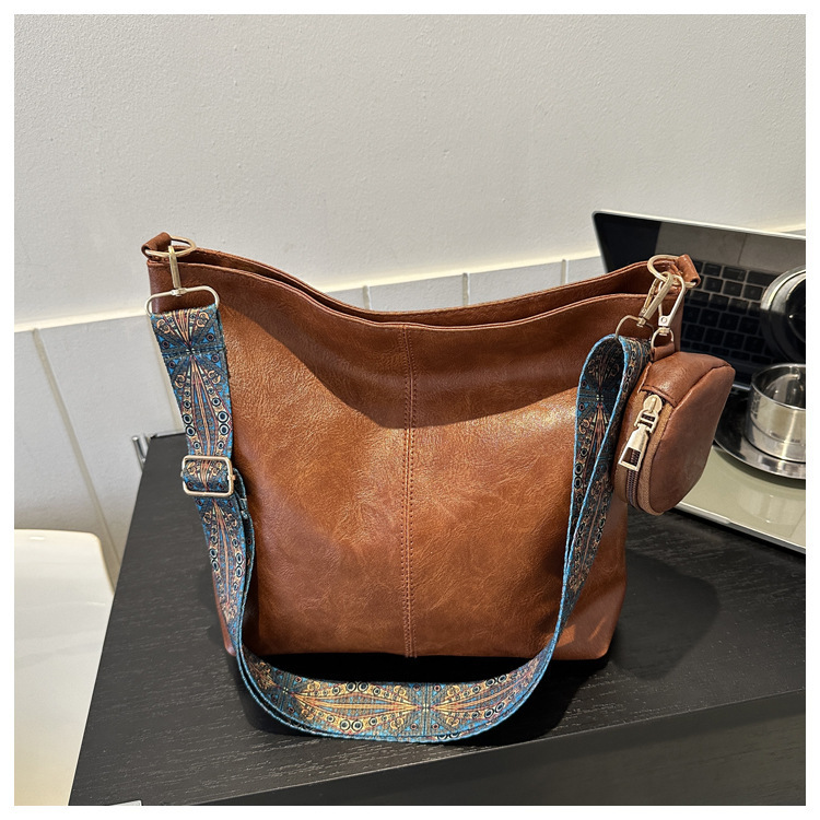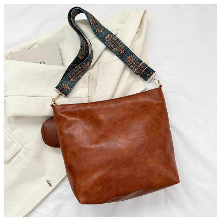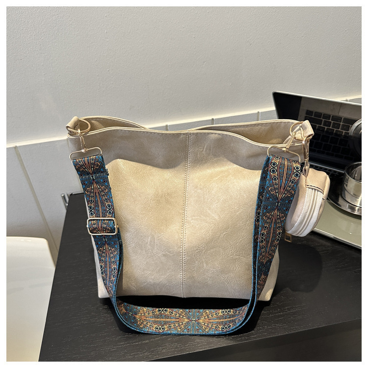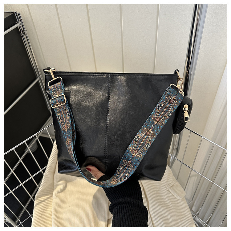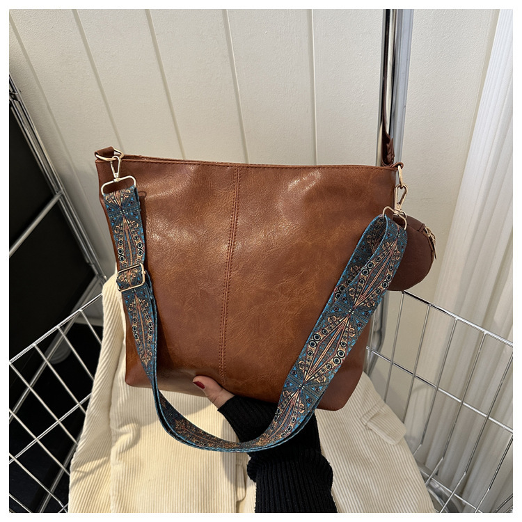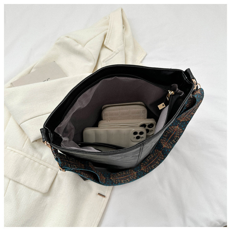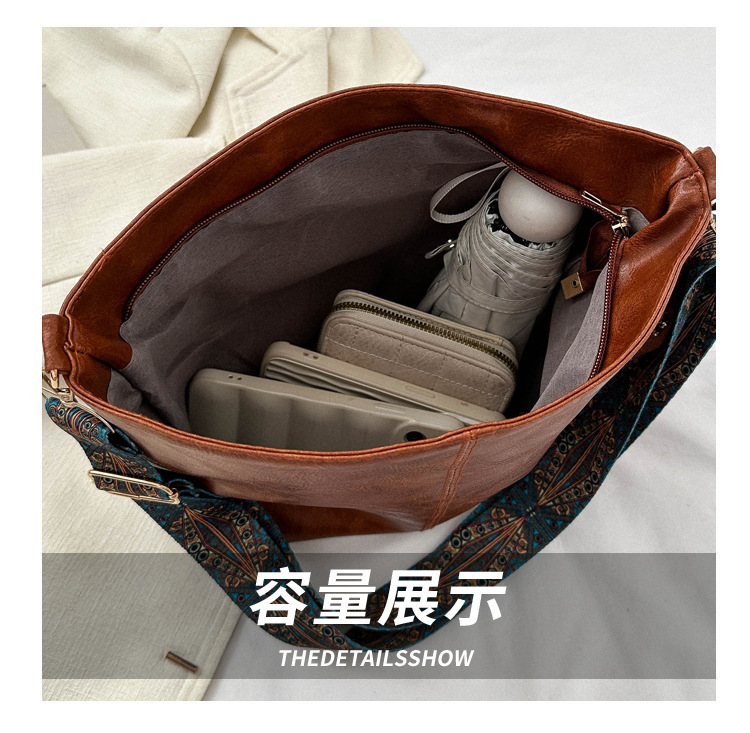 유행 여성 가방 민족 스타일 대비 색상 넓은 어깨 끈 크로스 바디 가방 간단한 복고풍 질감 대용량 숄더백스토어 가기
