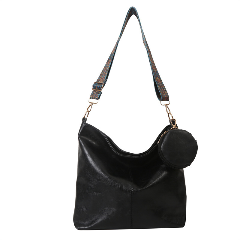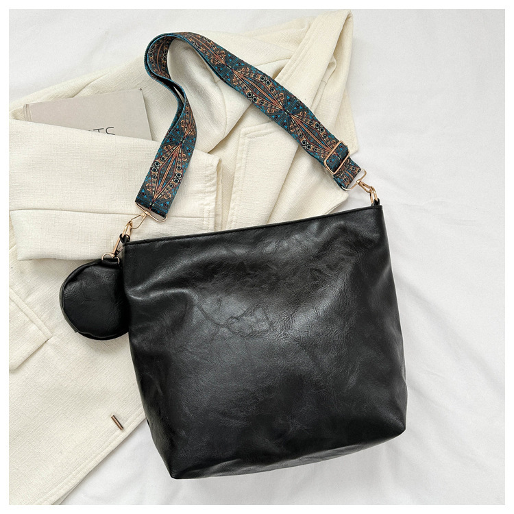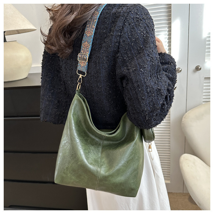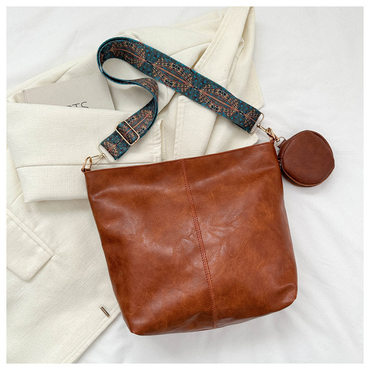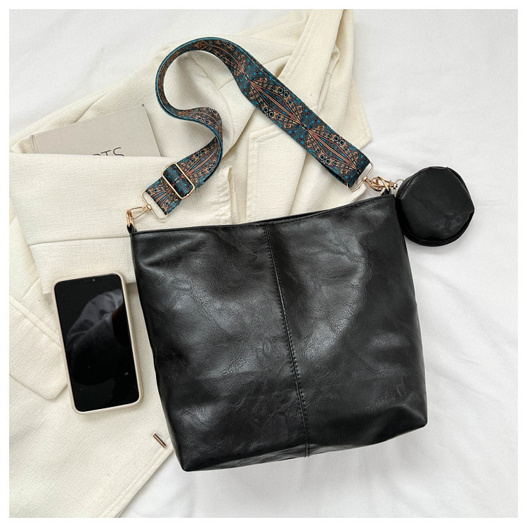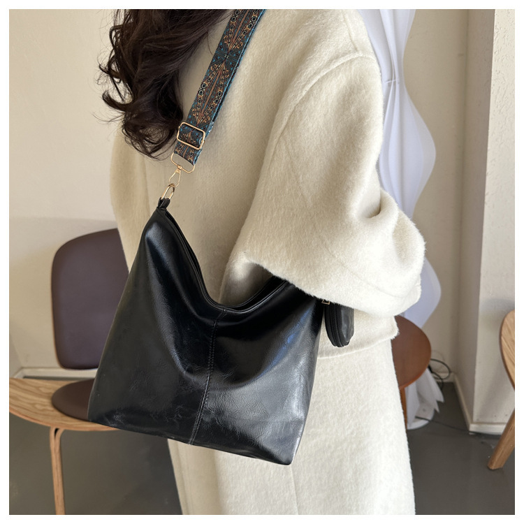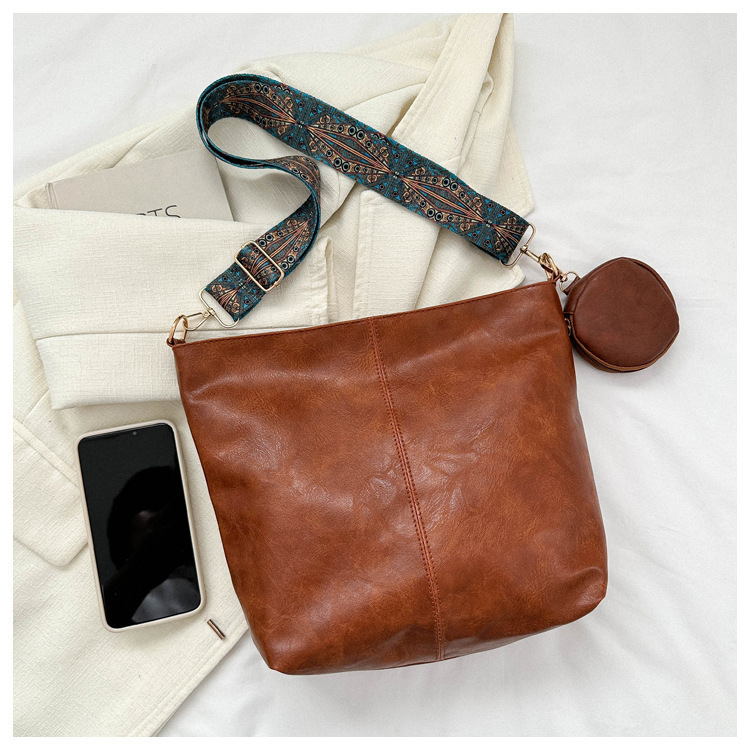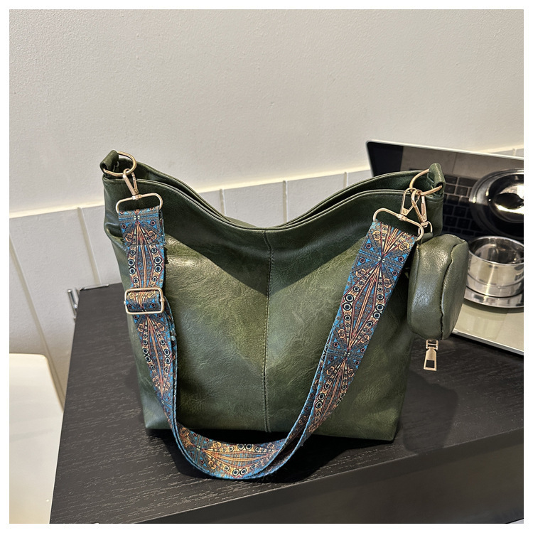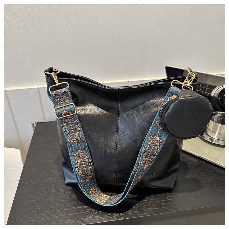 유행 여성 가방 민족 스타일 대비 색상 넓은 어깨 끈 크로스 바디 가방 간단한 복고풍 질감 대용량 숄더백스토어 가기