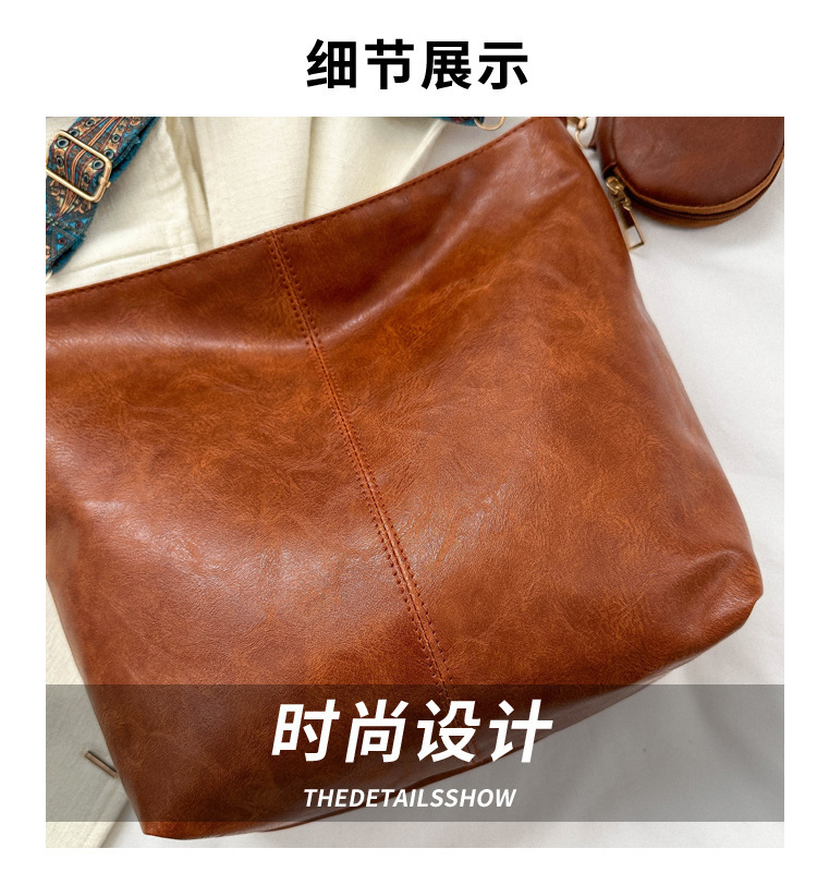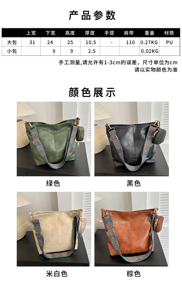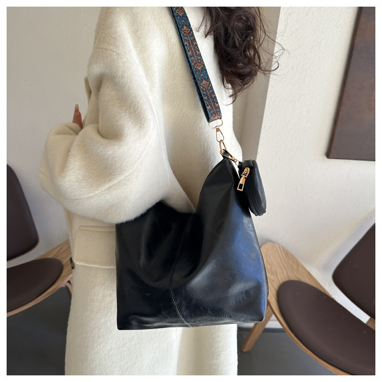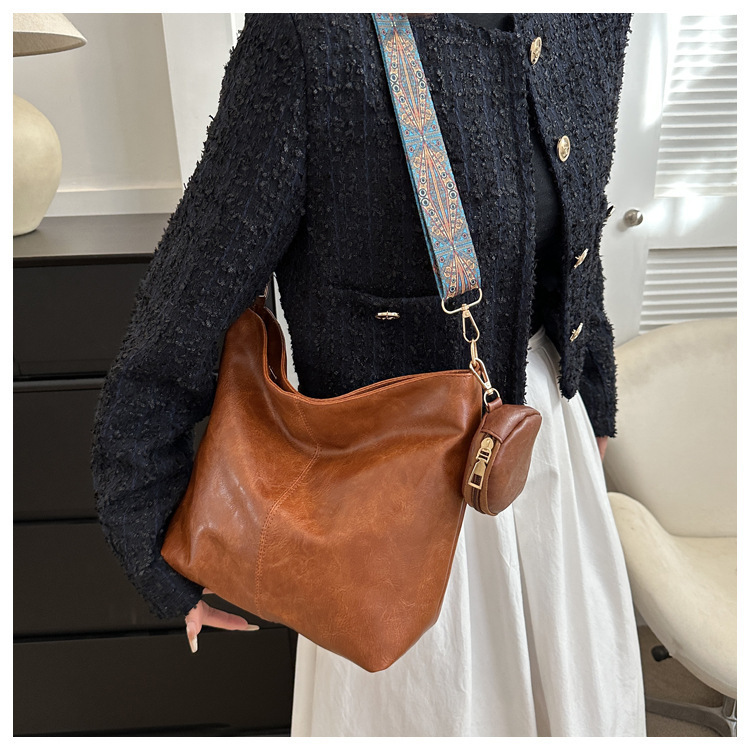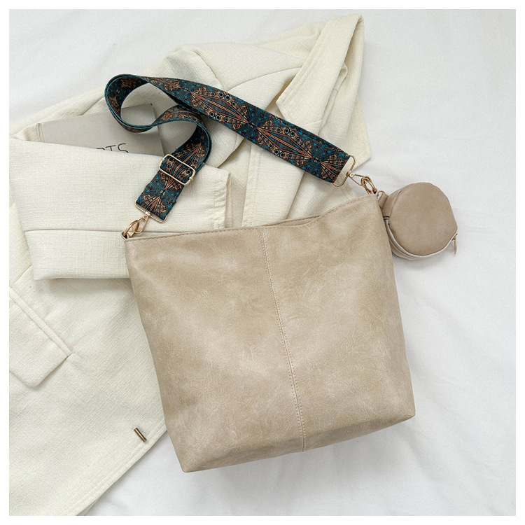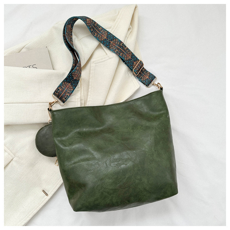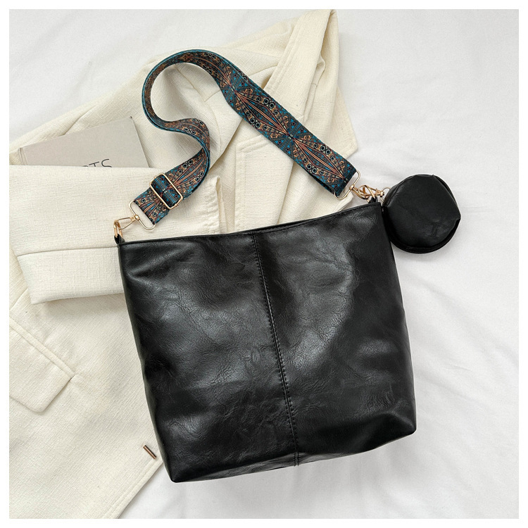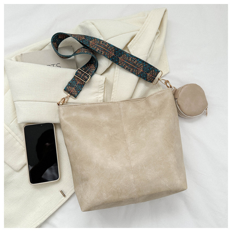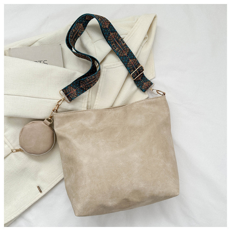 유행 여성 가방 민족 스타일 대비 색상 넓은 어깨 끈 크로스 바디 가방 간단한 복고풍 질감 대용량 숄더백스토어 가기