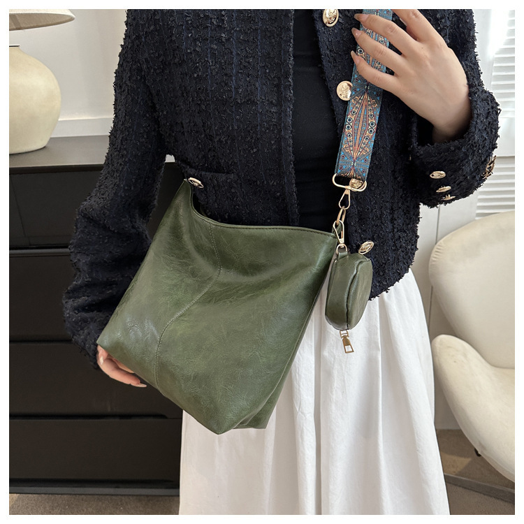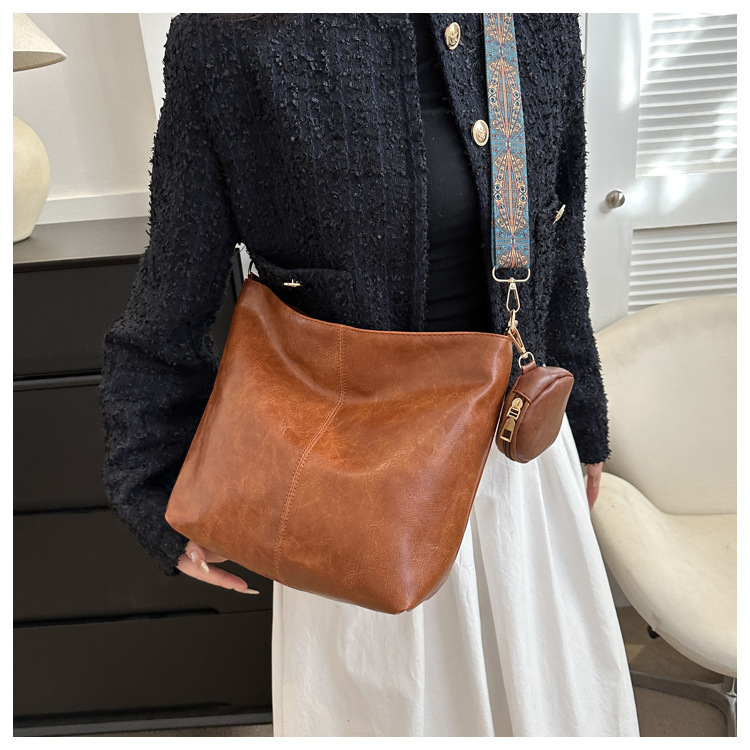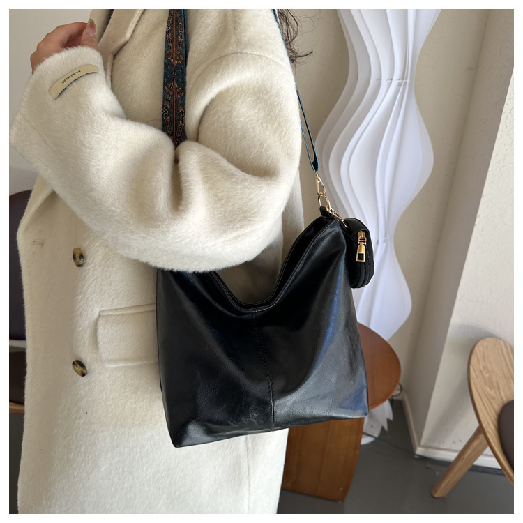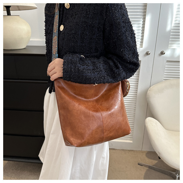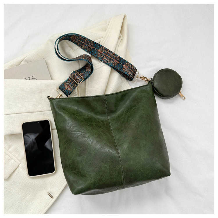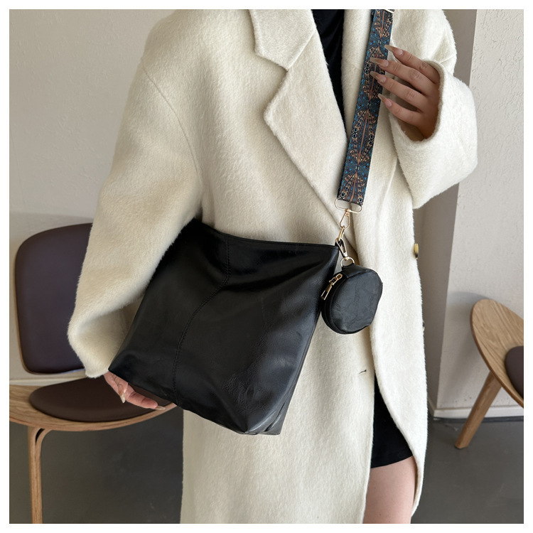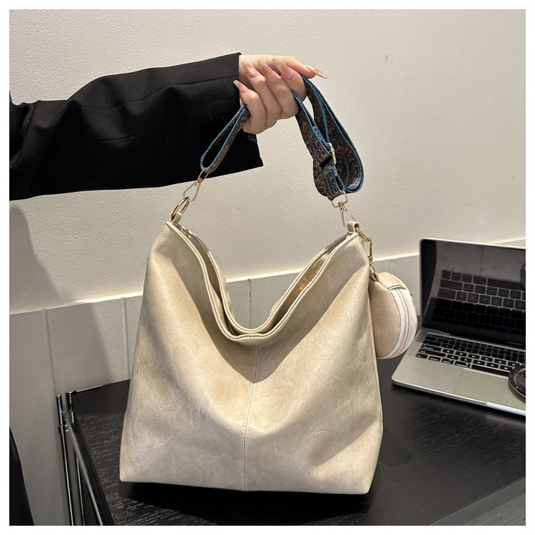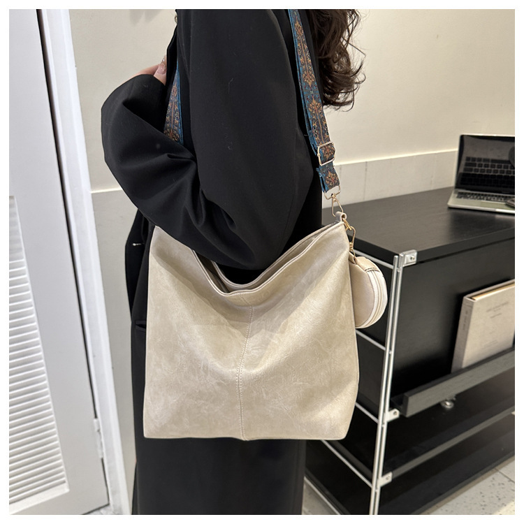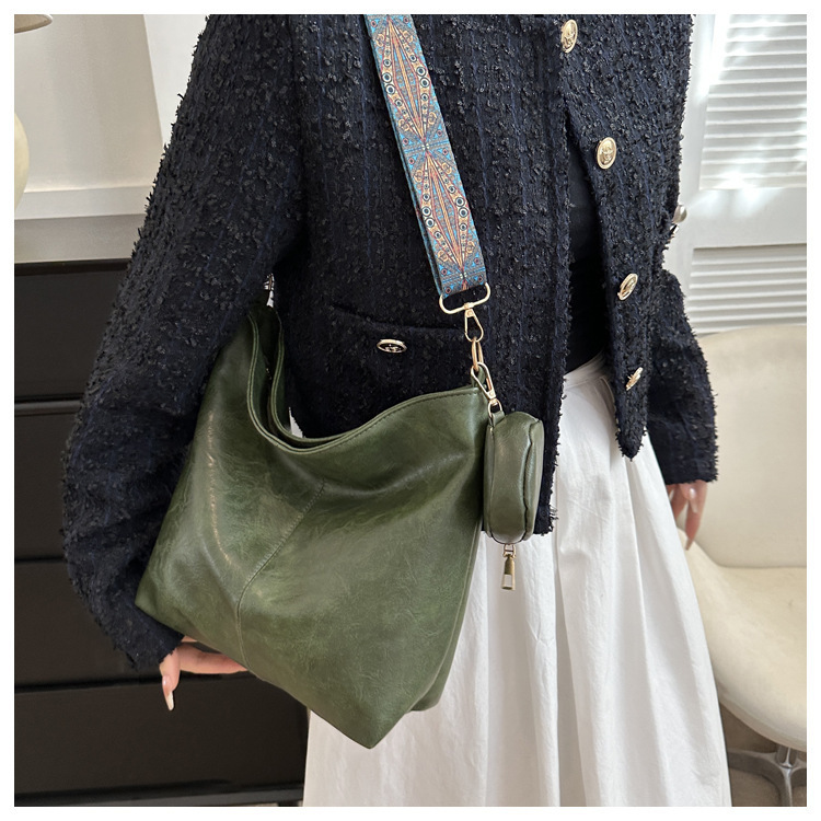 유행 여성 가방 민족 스타일 대비 색상 넓은 어깨 끈 크로스 바디 가방 간단한 복고풍 질감 대용량 숄더백스토어 가기