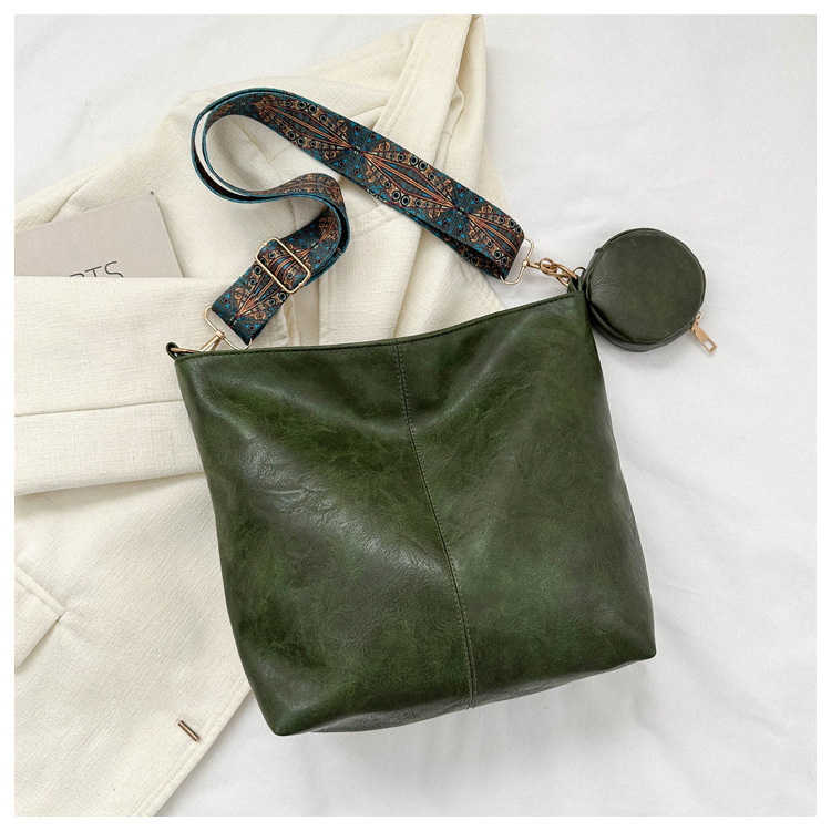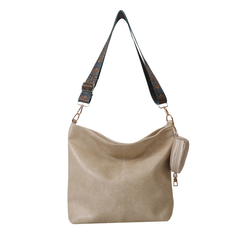 유행 여성 가방 민족 스타일 대비 색상 넓은 어깨 끈 크로스 바디 가방 간단한 복고풍 질감 대용량 숄더백