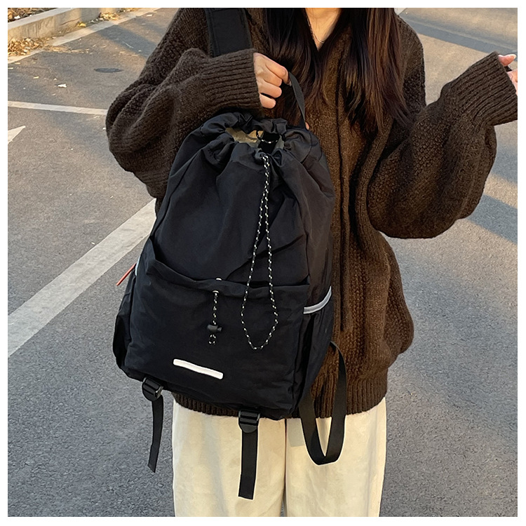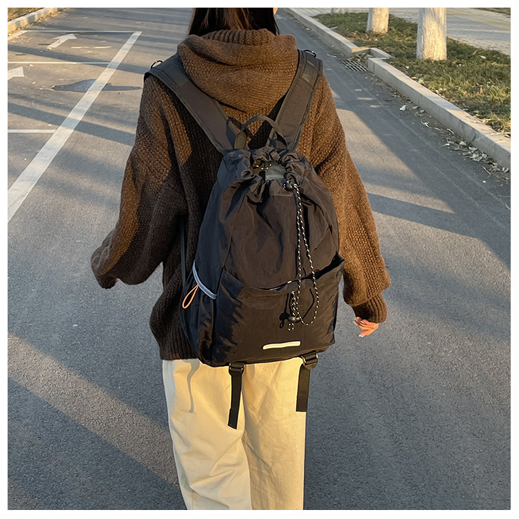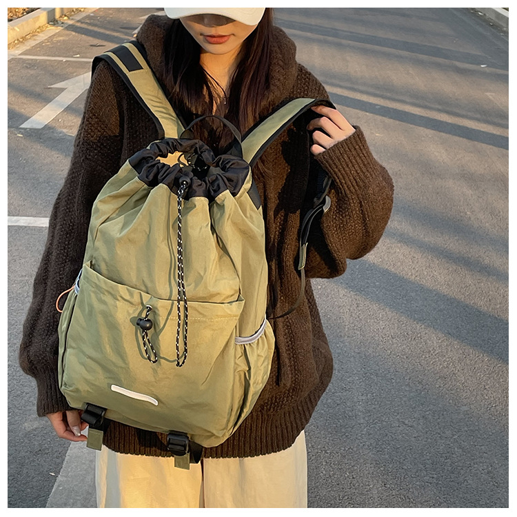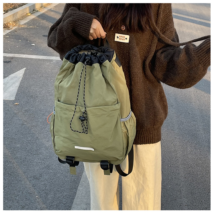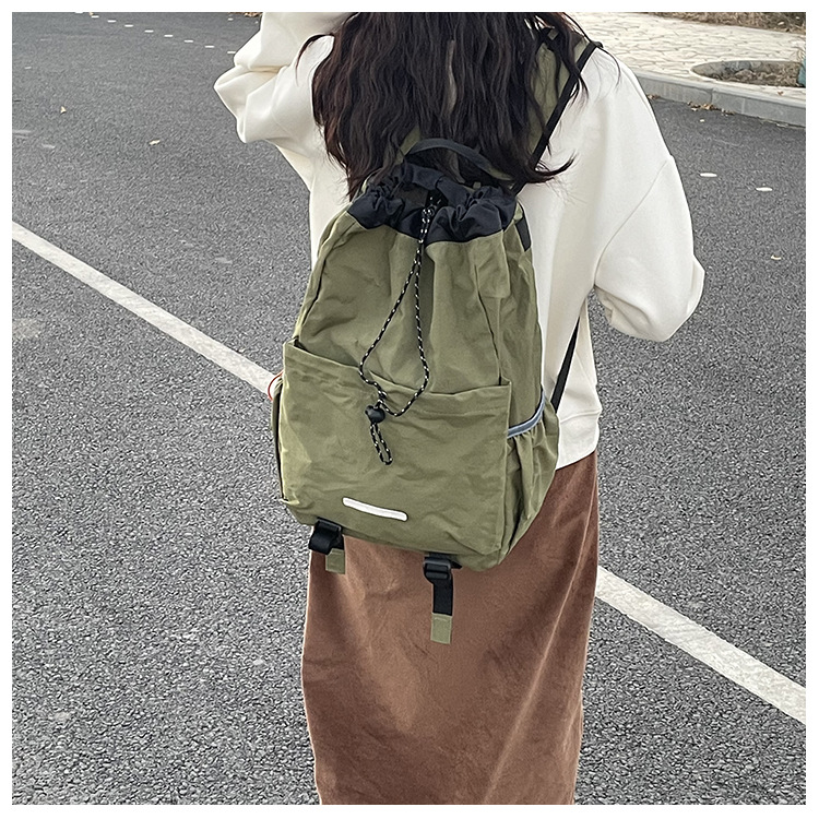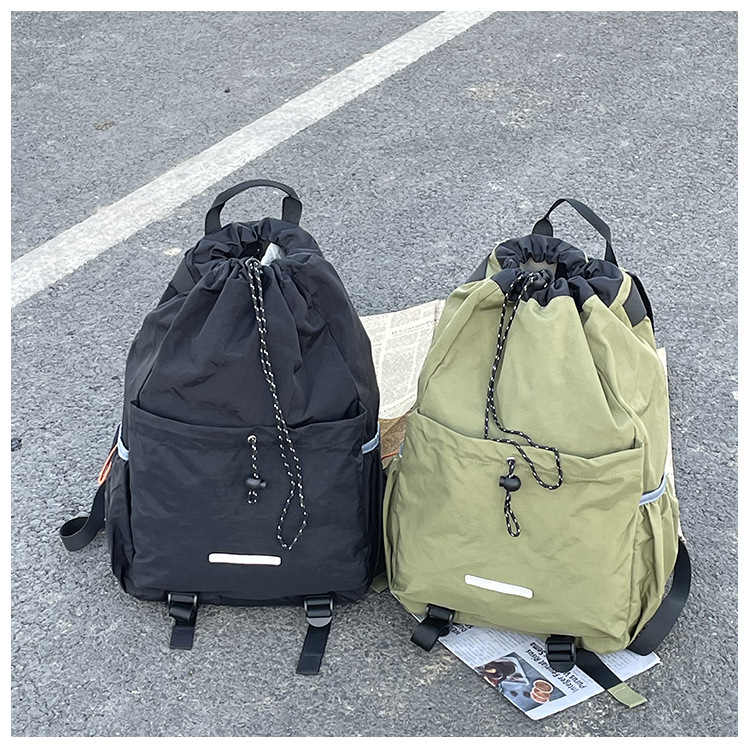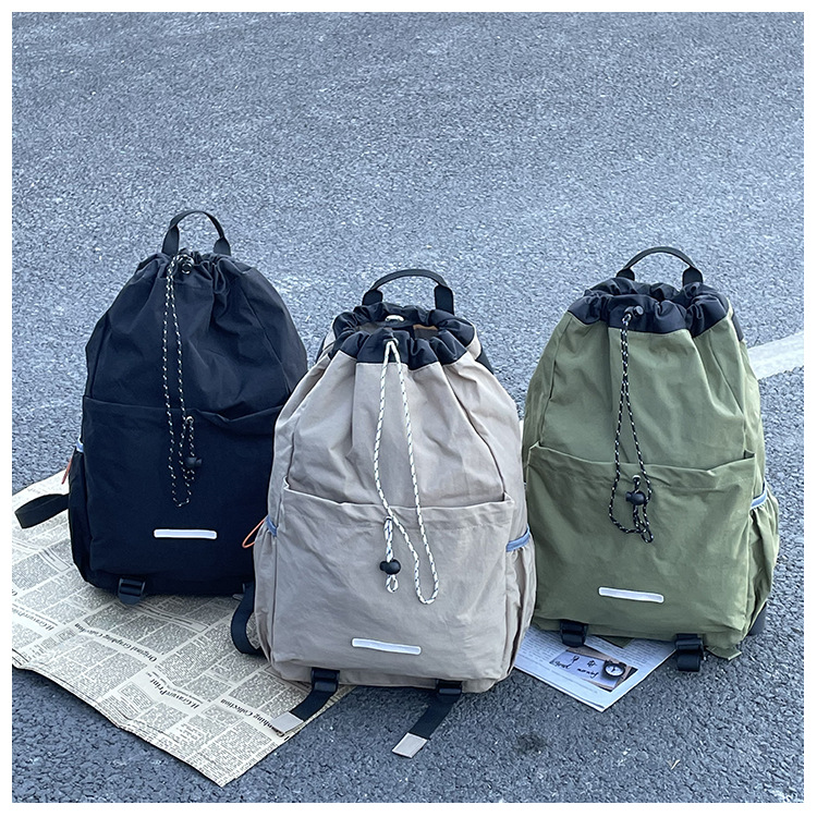 드로우 스트링 복고풍 배낭 남자 2024 새로운 나일론 방수 대학 학생 스포츠 야외 커플 여행 배낭 패션스토어 가기