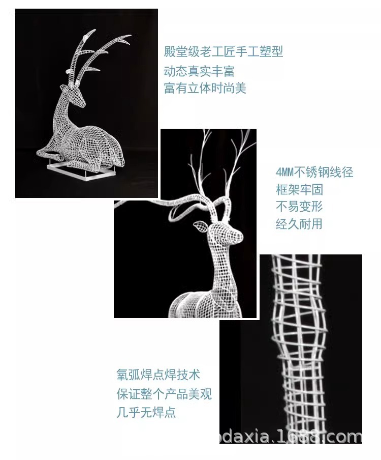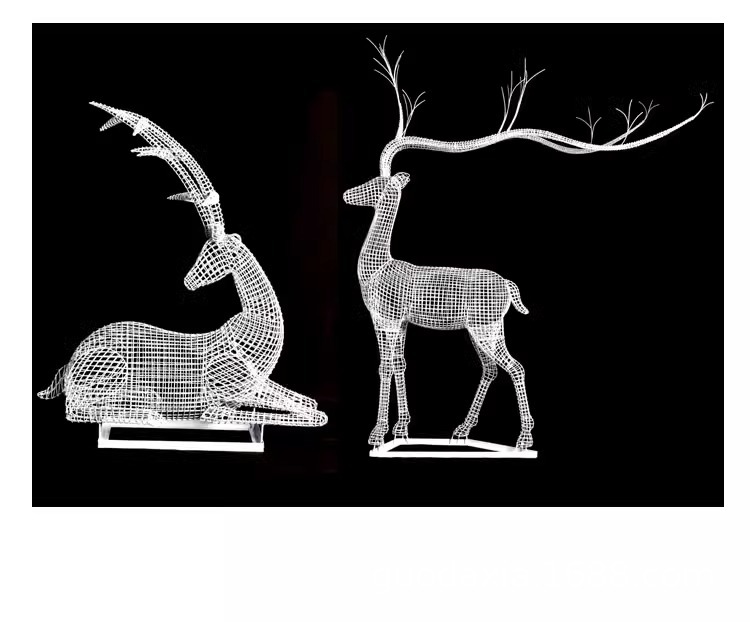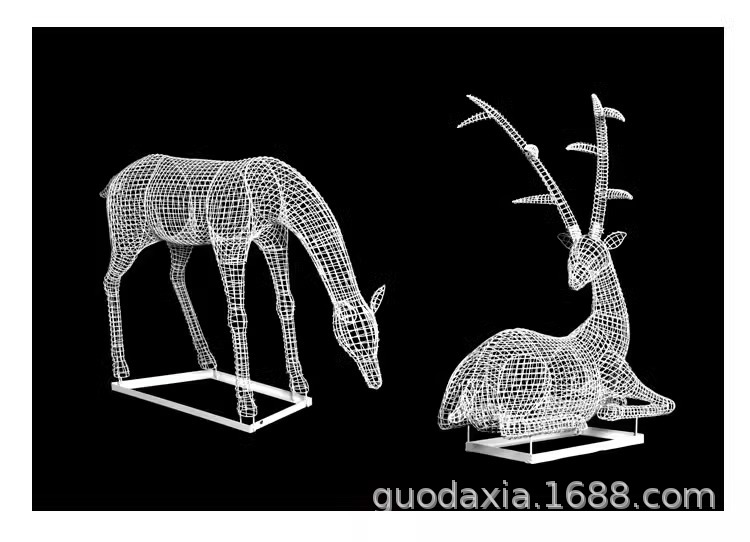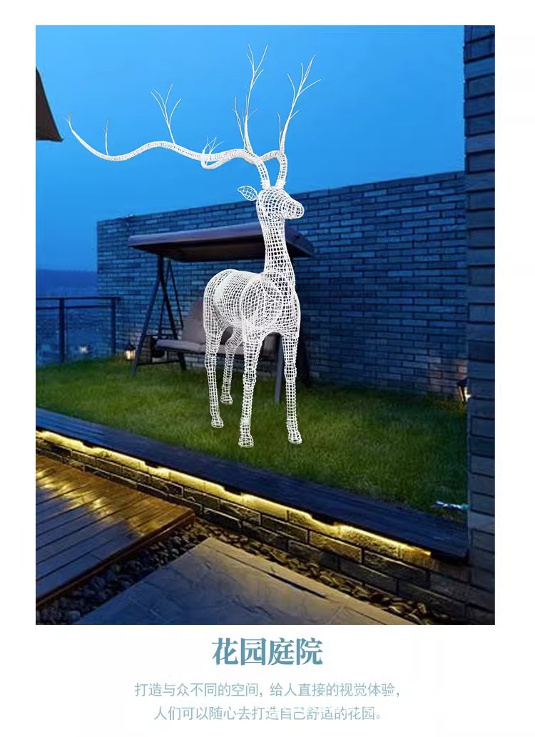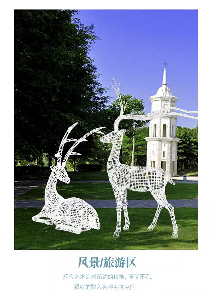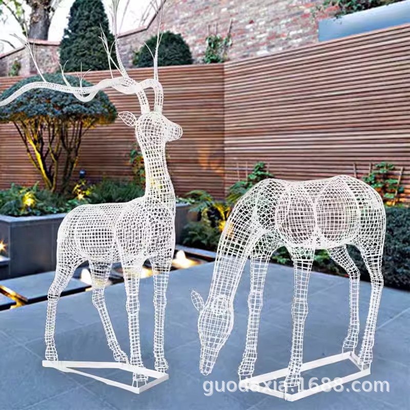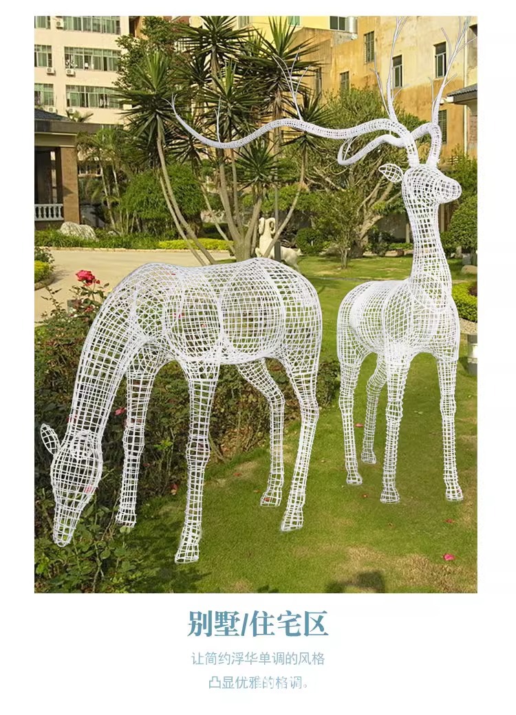 공원 잔디 풍경 철 속이 빈 매화 사슴 조각 건물 스테인레스 스틸 시뮬레이션 동물 그리드 장식 사슴스토어 가기