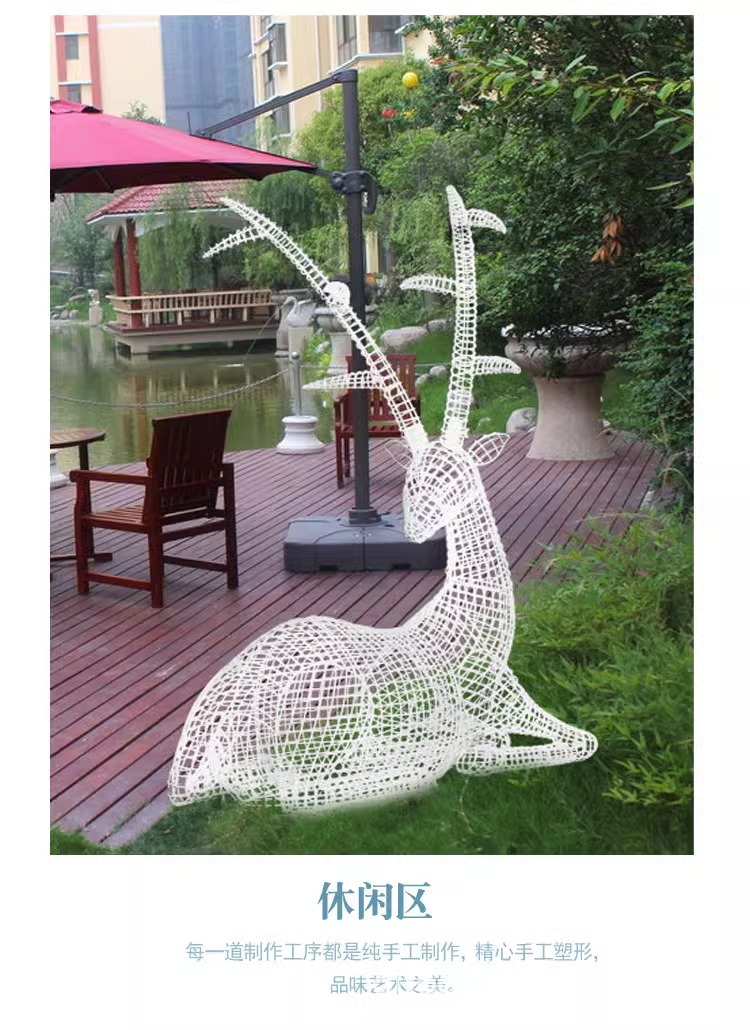 공원 잔디 풍경 철 속이 빈 매화 사슴 조각 건물 스테인레스 스틸 시뮬레이션 동물 그리드 장식 사슴