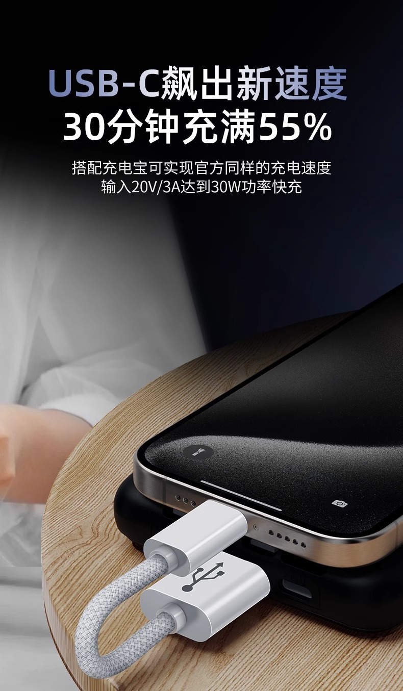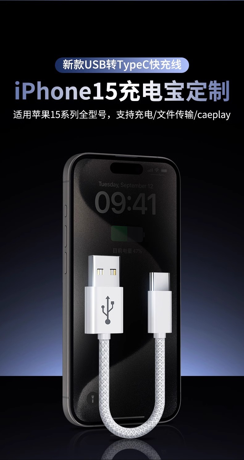 애플 15 데이터 라인 짧은 라인 35W 빠른 충전 운반 보물 iPhone15 짠 자동차 CarPlay스토어 가기