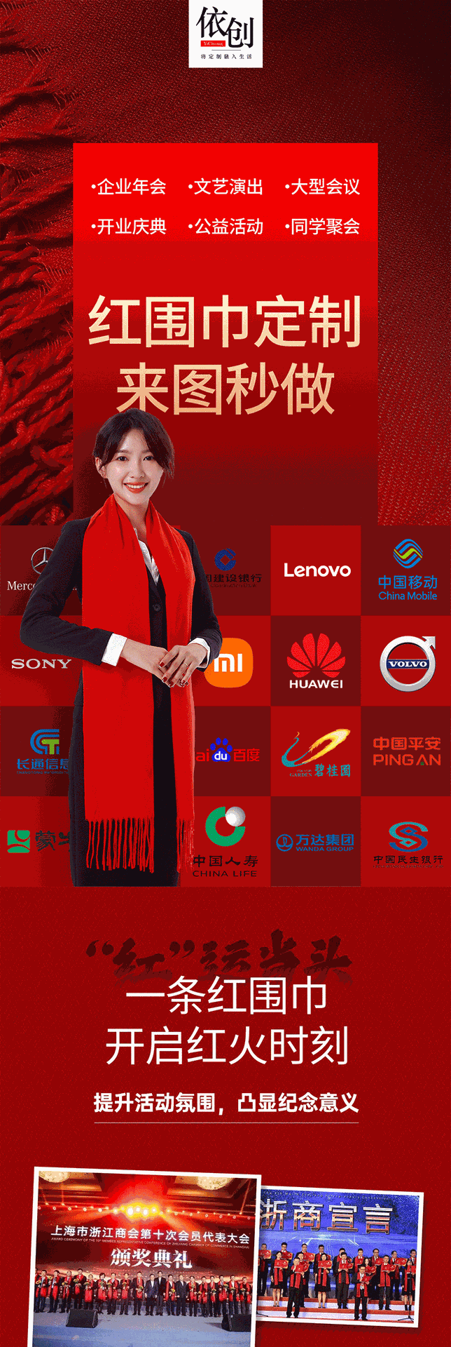 연례 회의 빨간 스카프 맞춤 도매 자수 인쇄 로고 비즈니스 회의 개회식 축하 선물 기업 스카프