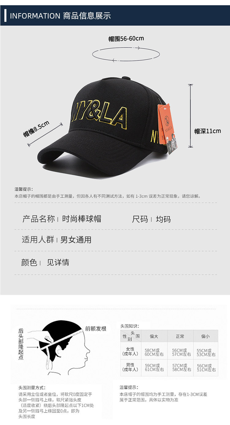 Yiyi 여름 새로운 자수 편지 NY & LA 메쉬 야구 모자 TikTok 인기있는 태양 방지 태양 방지 캐주얼 패션