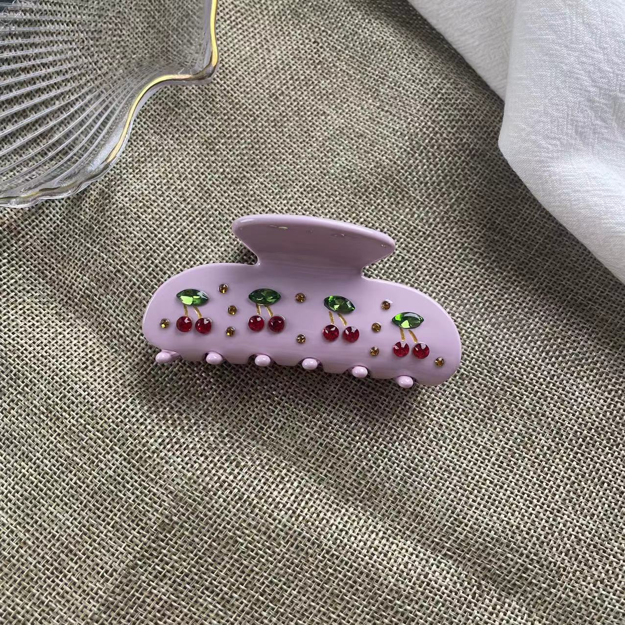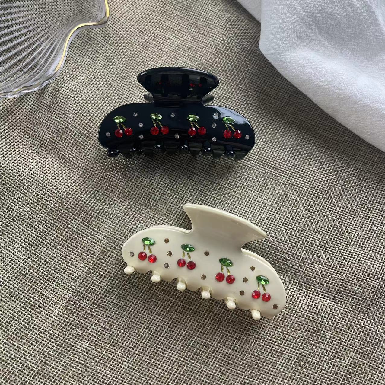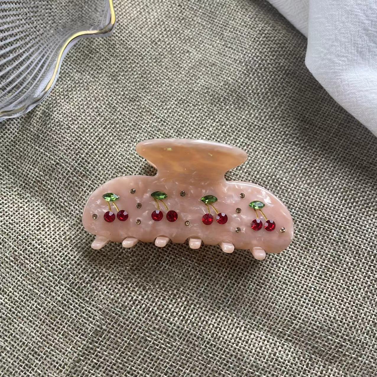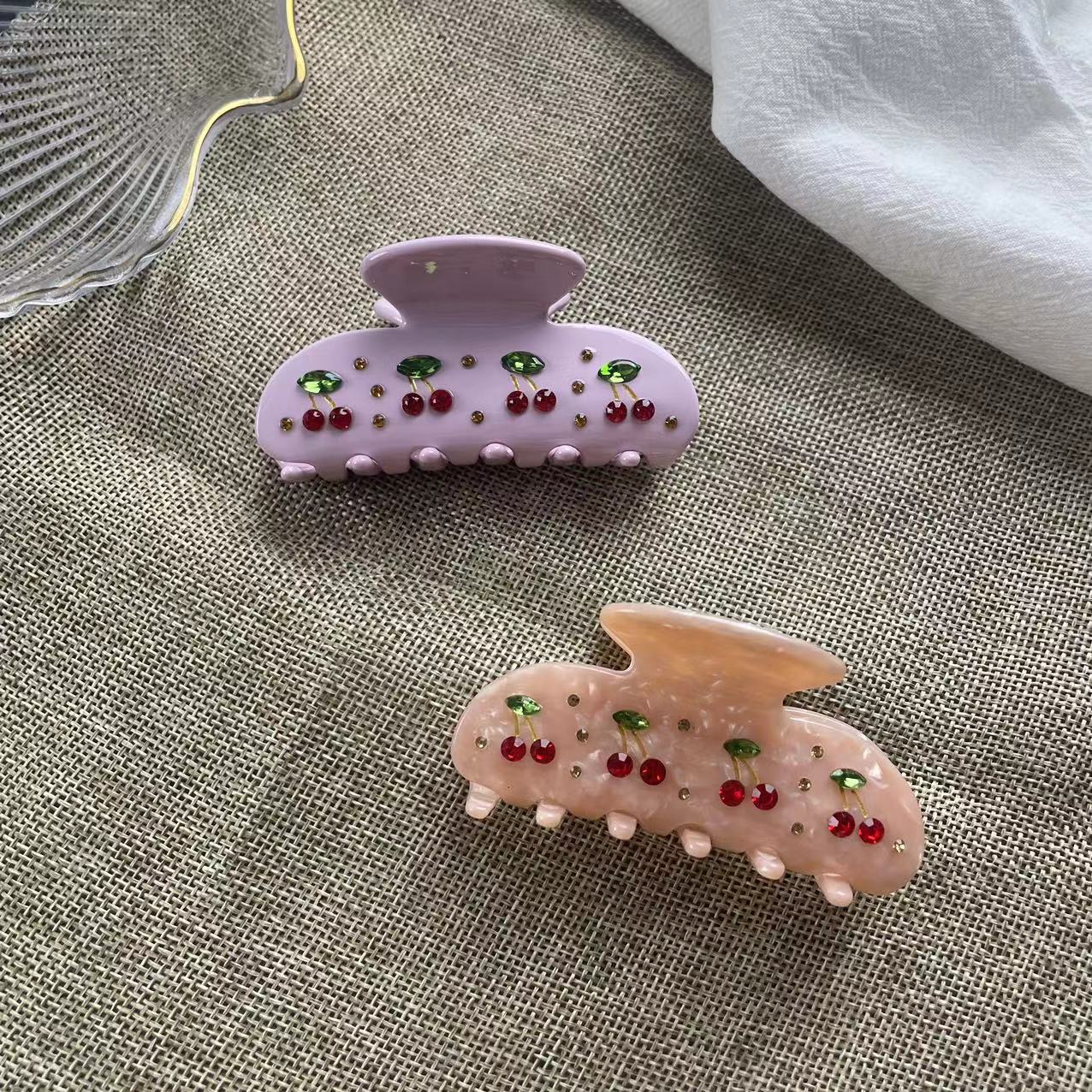 프랑스 체리 머리핀 작은 고품질 아세테이트 헤어 클립 우아한 큰 머리 그립 뒤 머리 updo 헤어 액세서리