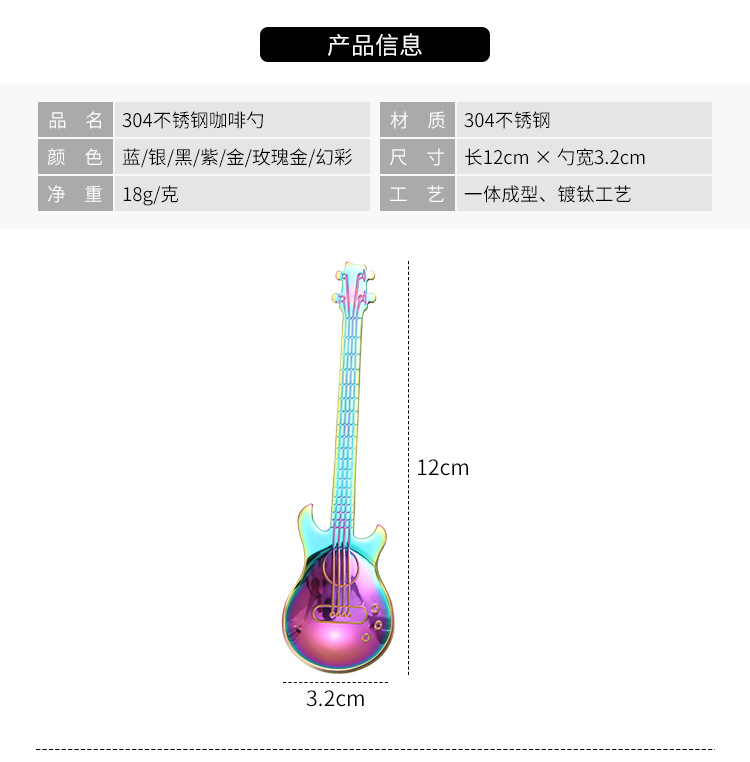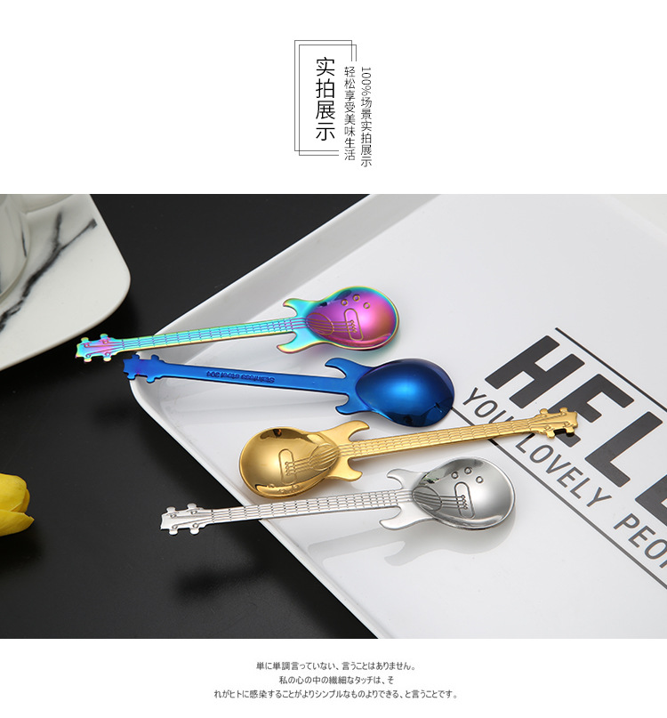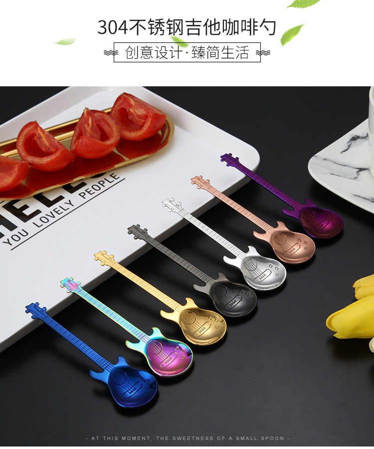 304 스테인리스 기타 숟가락 커피 혼합 숟가락 기타 모양 신선한 디저트 숟가락 선물 도매