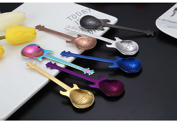 304 스테인리스 기타 숟가락 커피 혼합 숟가락 기타 모양 신선한 디저트 숟가락 선물 도매스토어 가기