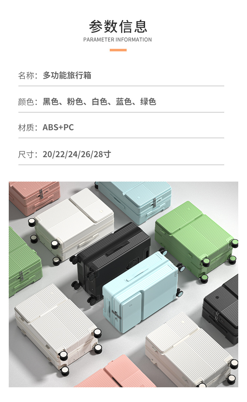 전면 개방 다기능 수하물 케이스 대용량 가방 여성 24 인치 높은 컬러 값 보이보드 케이스 남성 비밀번호 수하물
