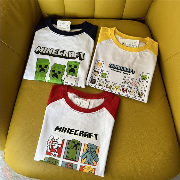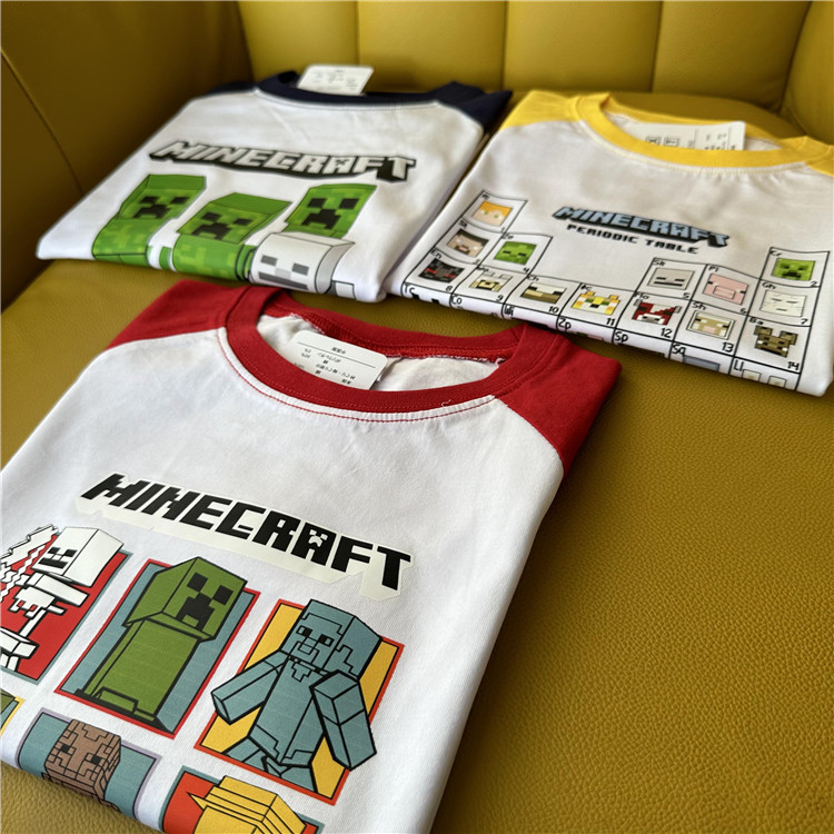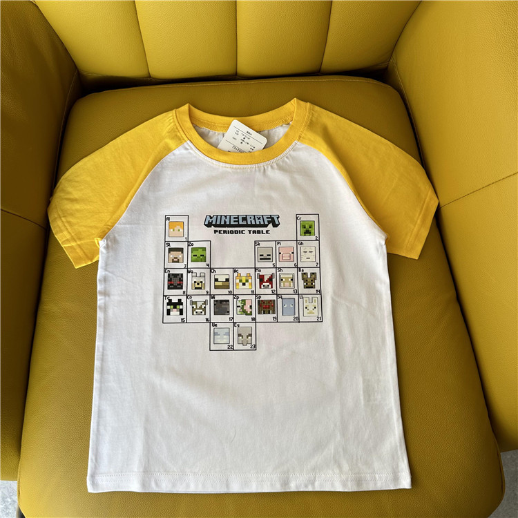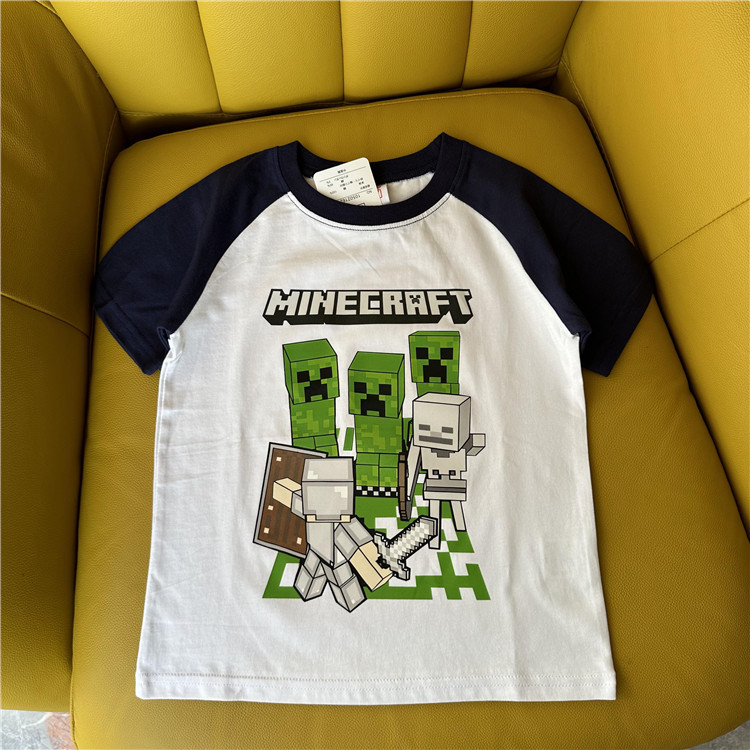 日单外贸卡通游戏主题我的世界系列拼色夏季童装短袖T恤衫