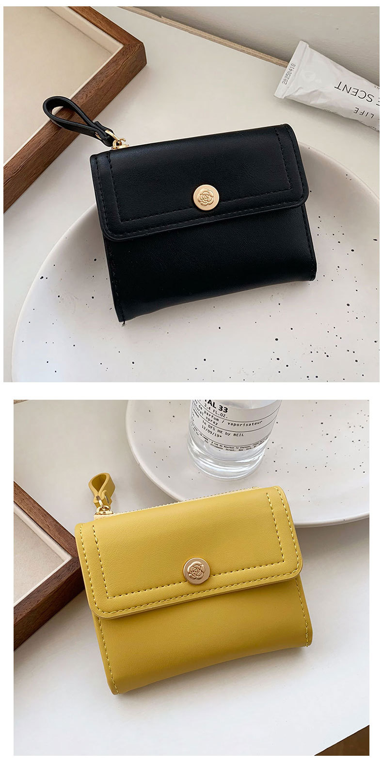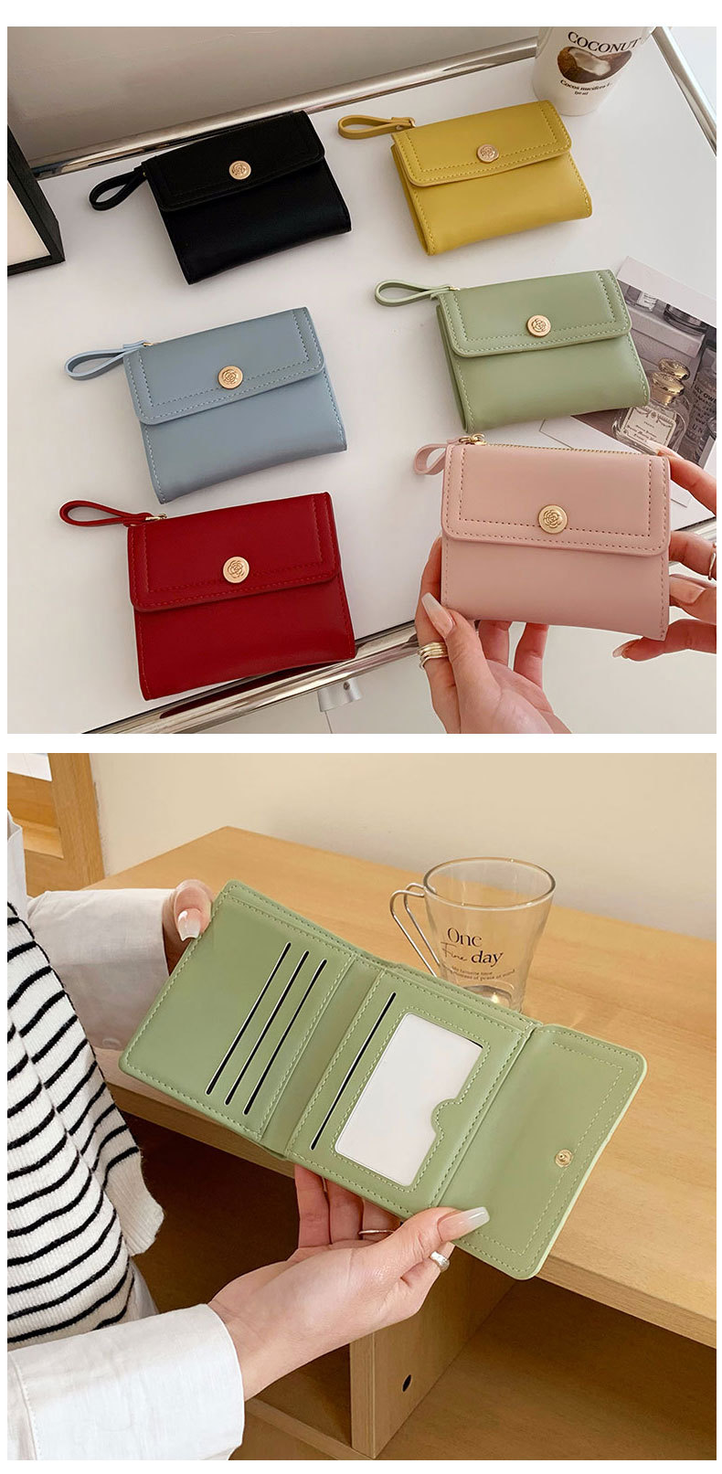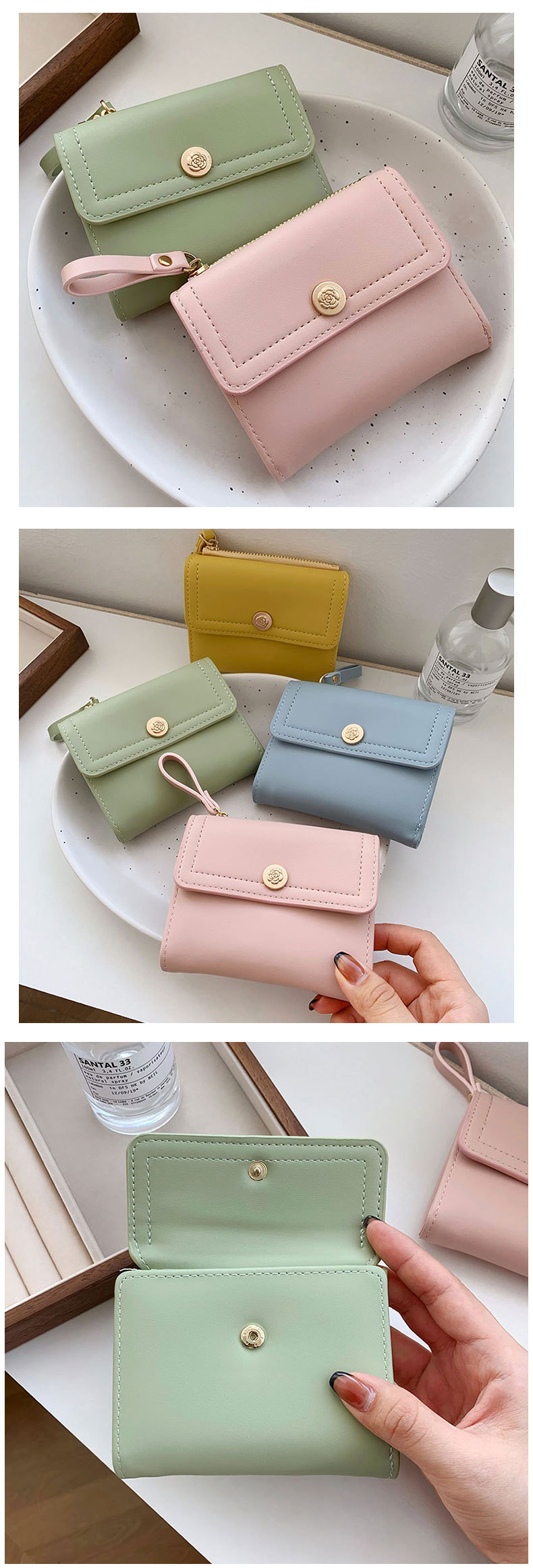 국경 간 짧은 패션 3 배 여성 접이식 지갑 학생 간단한 다기능 도매 인증서 동전 지갑스토어 가기