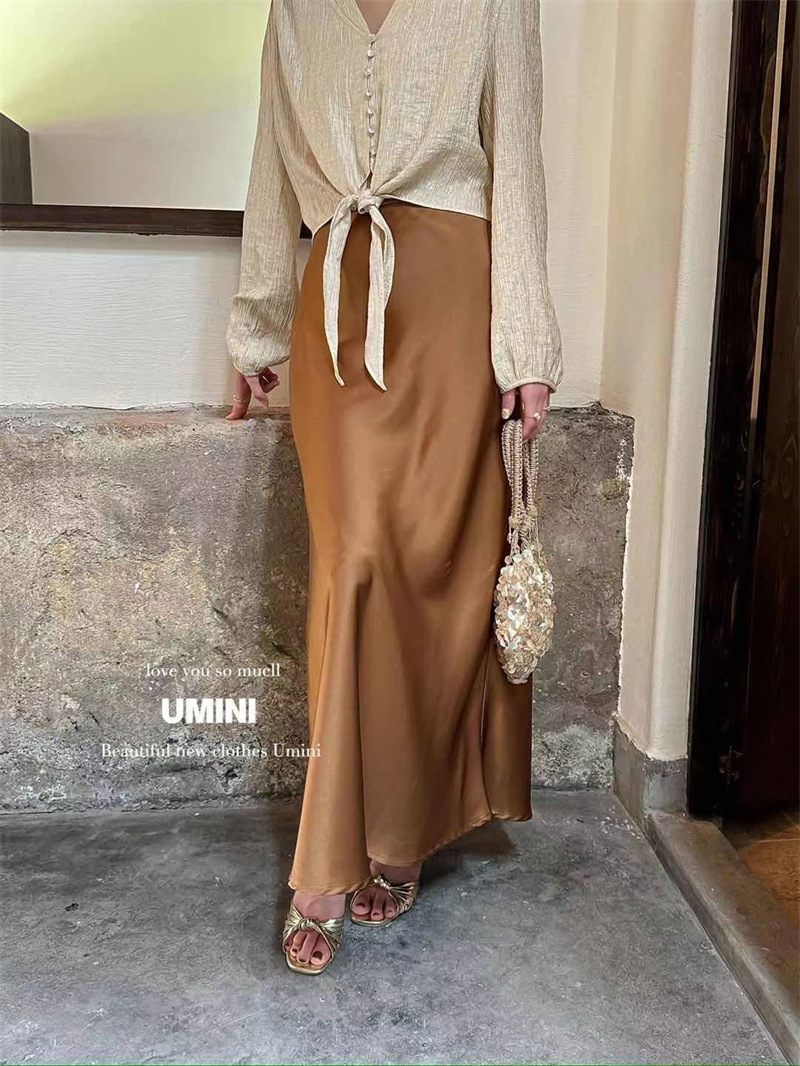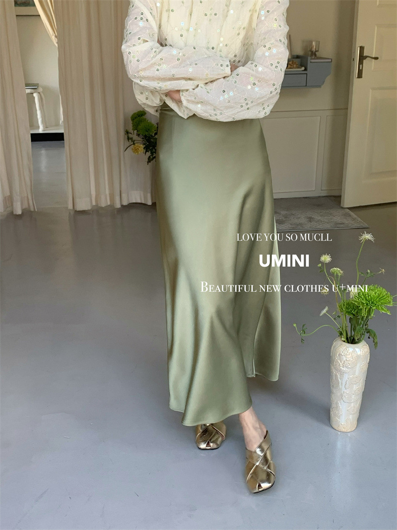 U 미니 13 라인 2015 새로운 봄 새로운 폭발 6 색 새틴 높은 허리 조커 작은 여성 치마