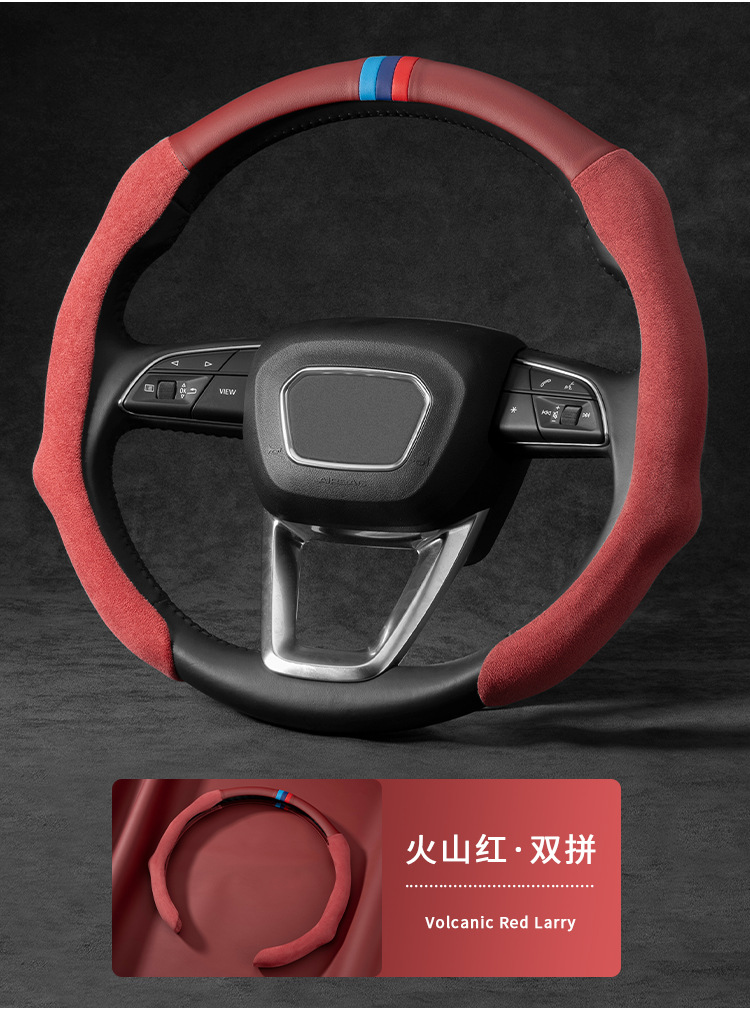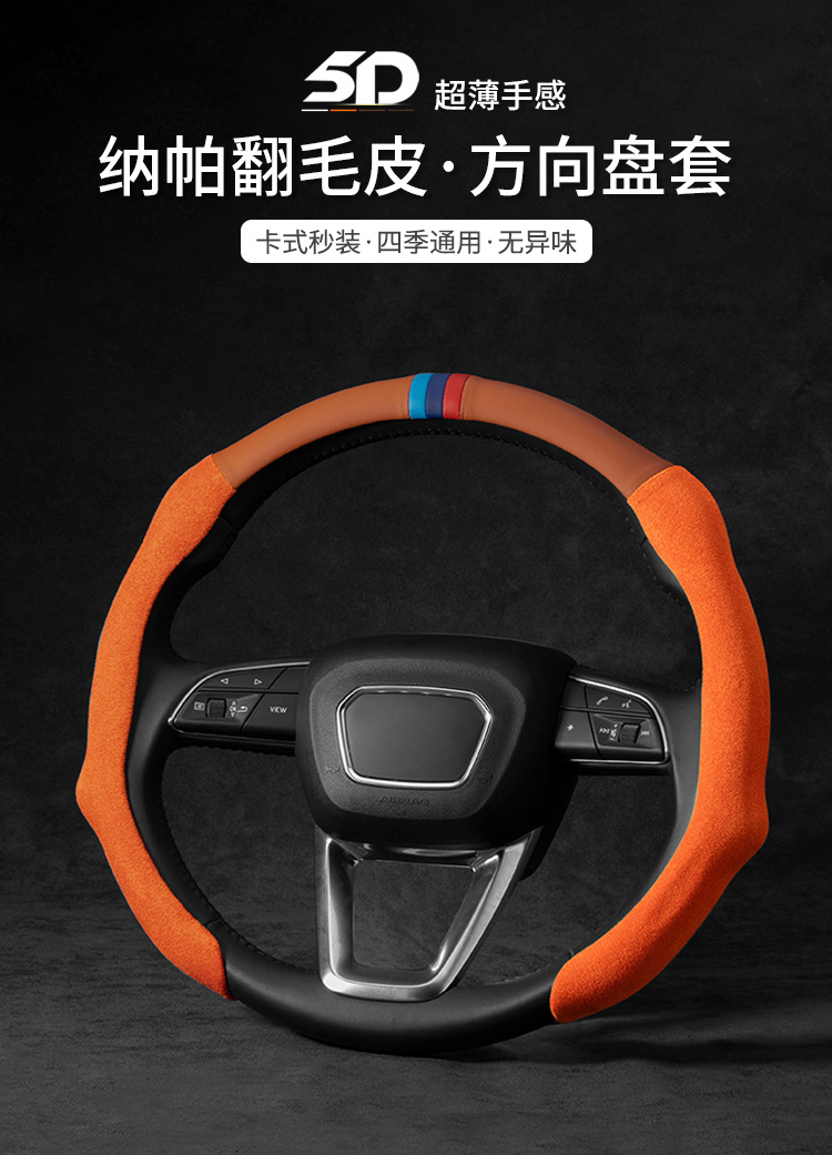 적용 가능한 자동차 스티어링 휠 커버 메르세데스-벤츠 BMW 아우디 초박형 나파 가죽 핸들 커버 땀 흡수성 미끄럼 통기성 사계절스토어 가기