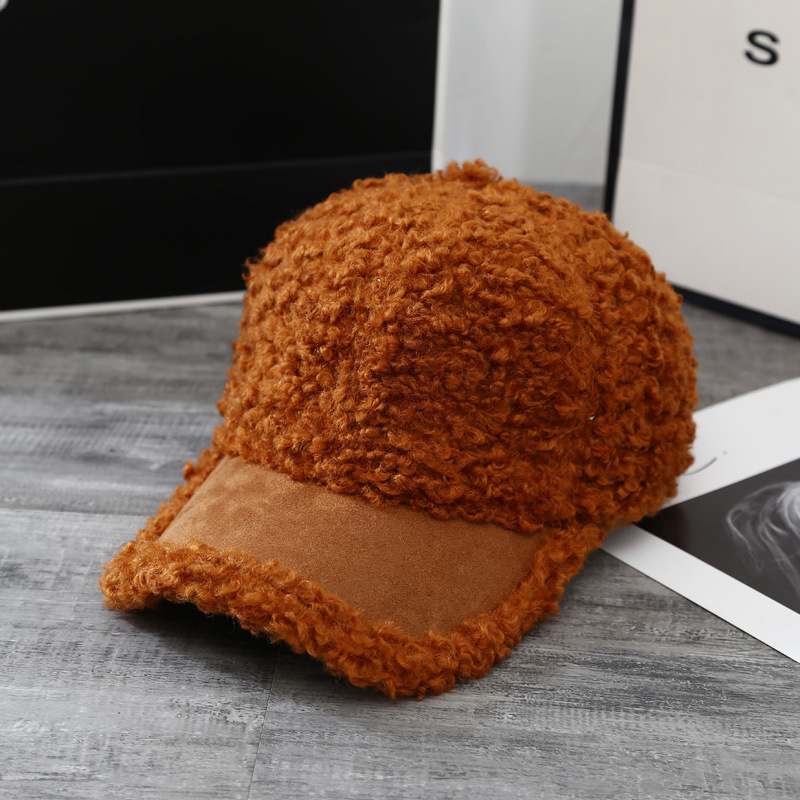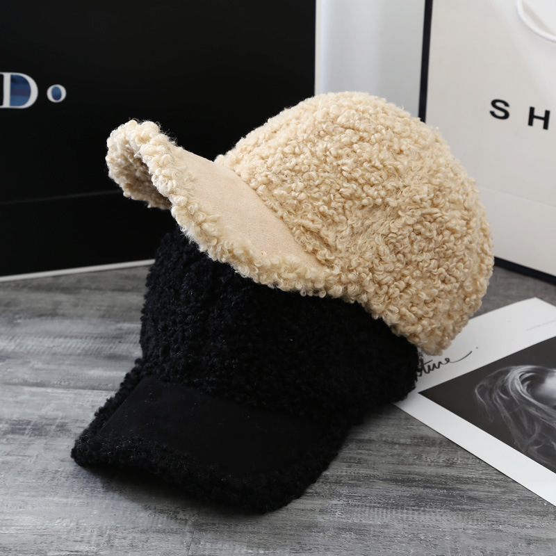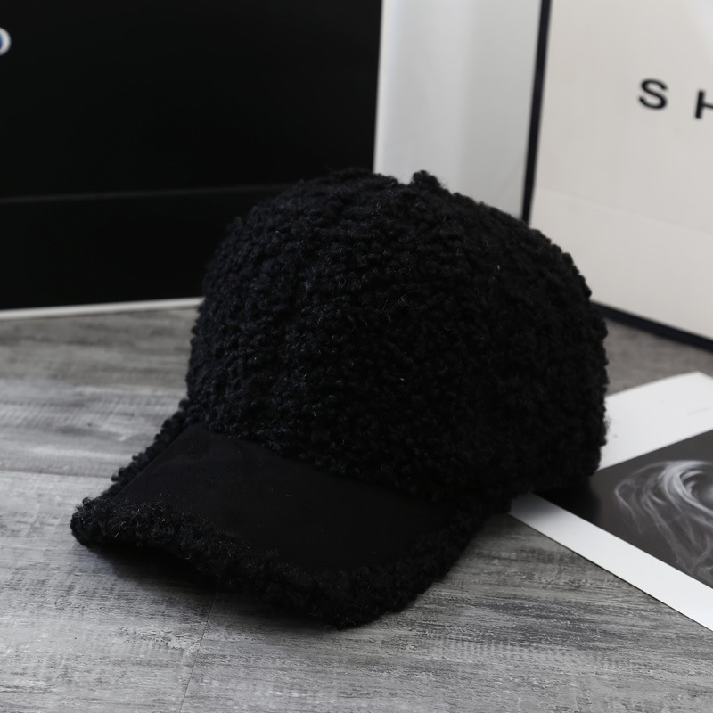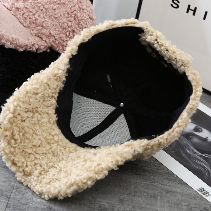 Yiyi 가을과 겨울 새로운 캐주얼 따뜻한 양모 야구 모자 한국식 특별 기모 단색 곡선 테두리 모자 학생 오리스토어 가기