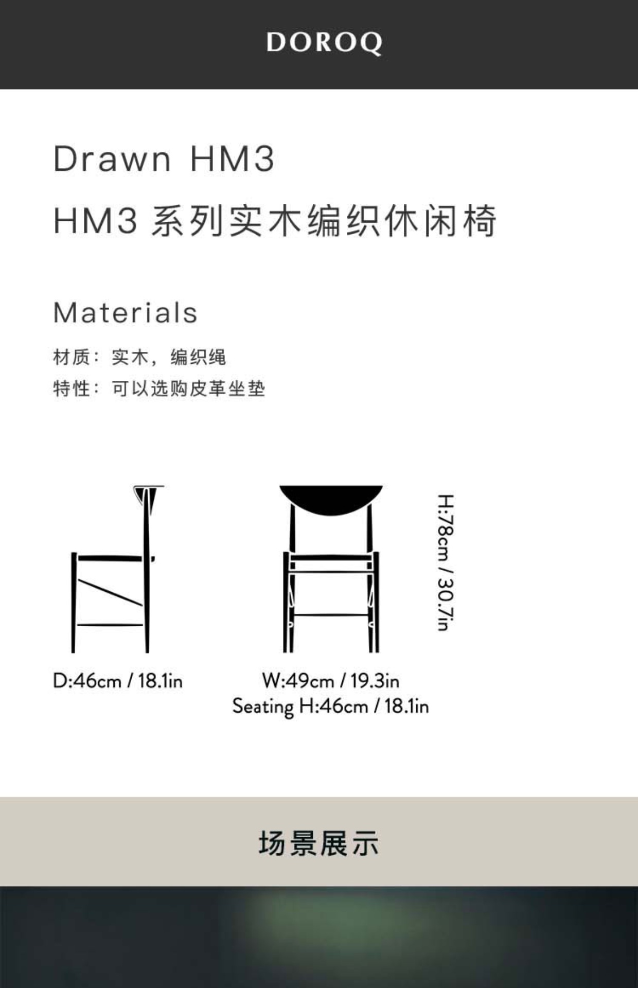 레저 그려진 현대 노르딕 덴마크 라운지 의자 단단한 나무 HM3 시리즈 간단한 전통스토어 가기