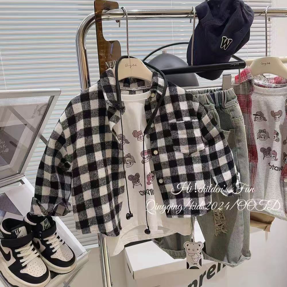 어린이 셔츠 2025 새로운 가을 복고풍 소년 소녀 옷깃 셔츠 서양식 아동복 헤어 세대스토어 가기