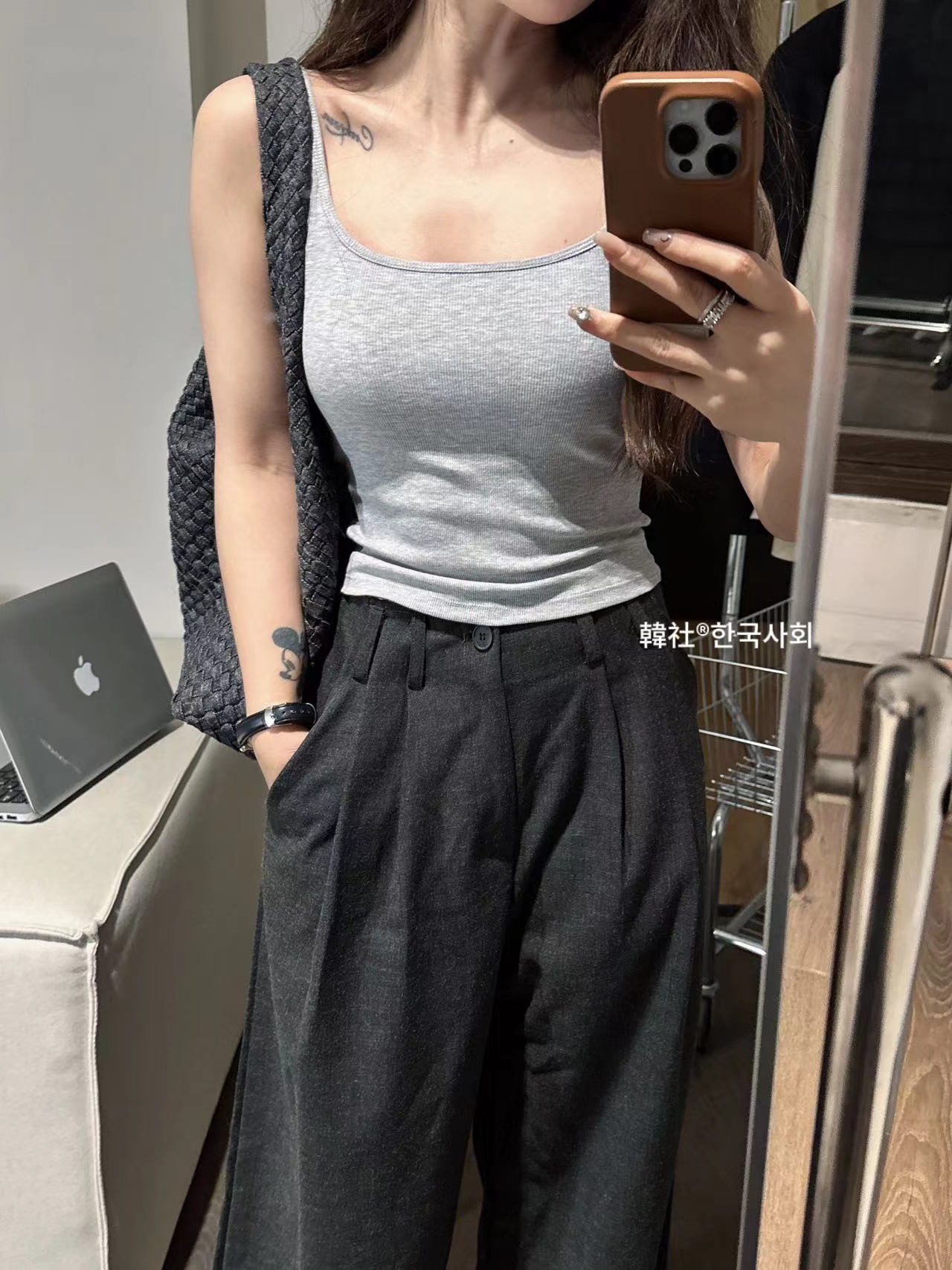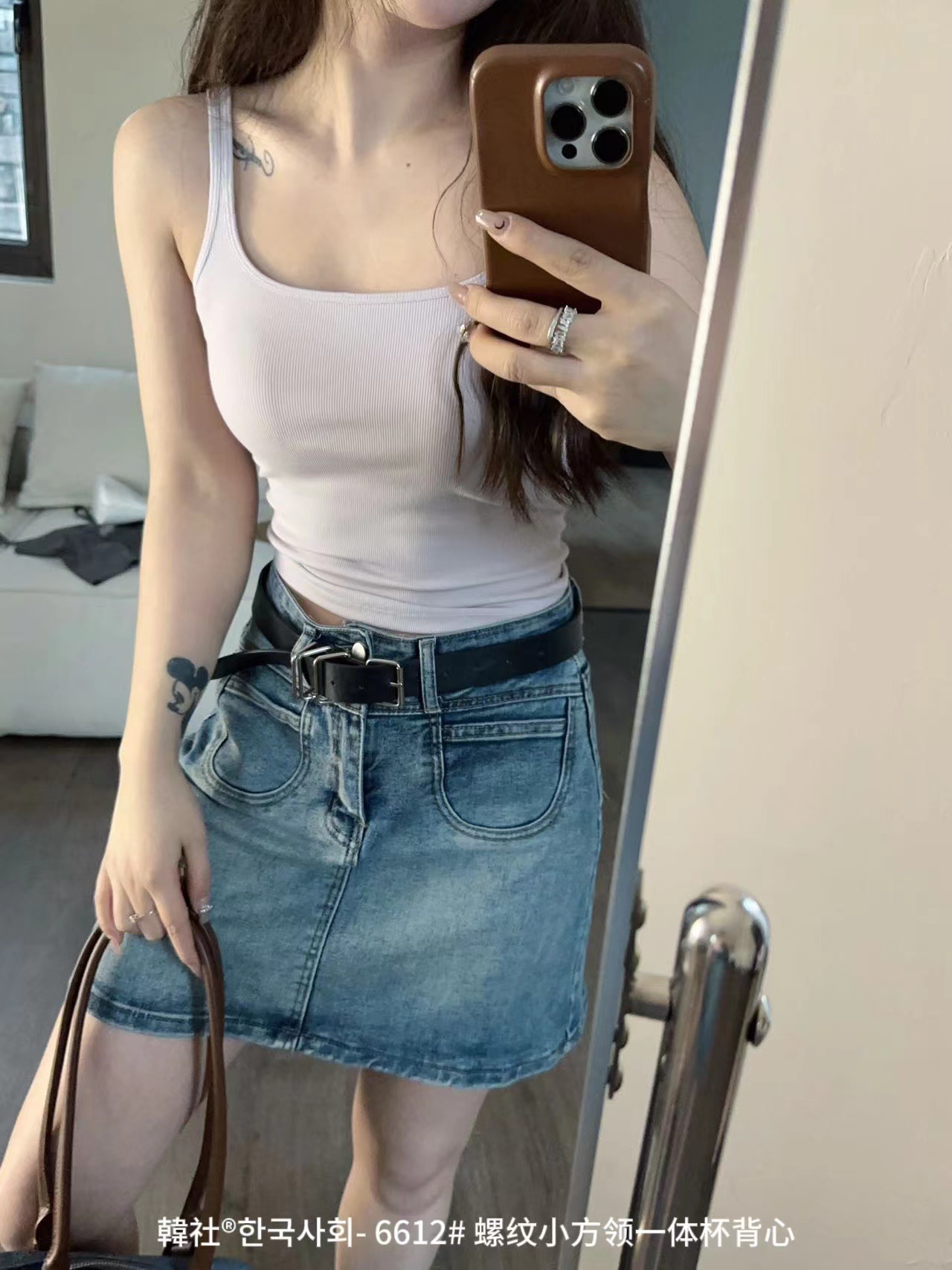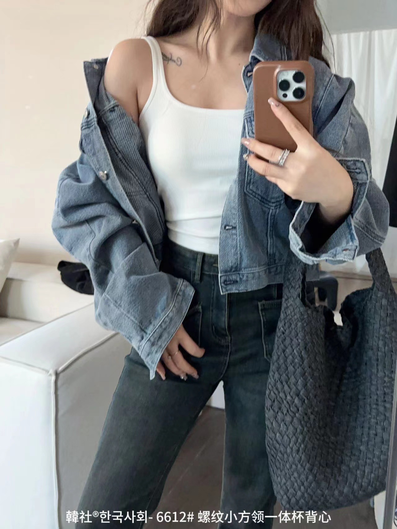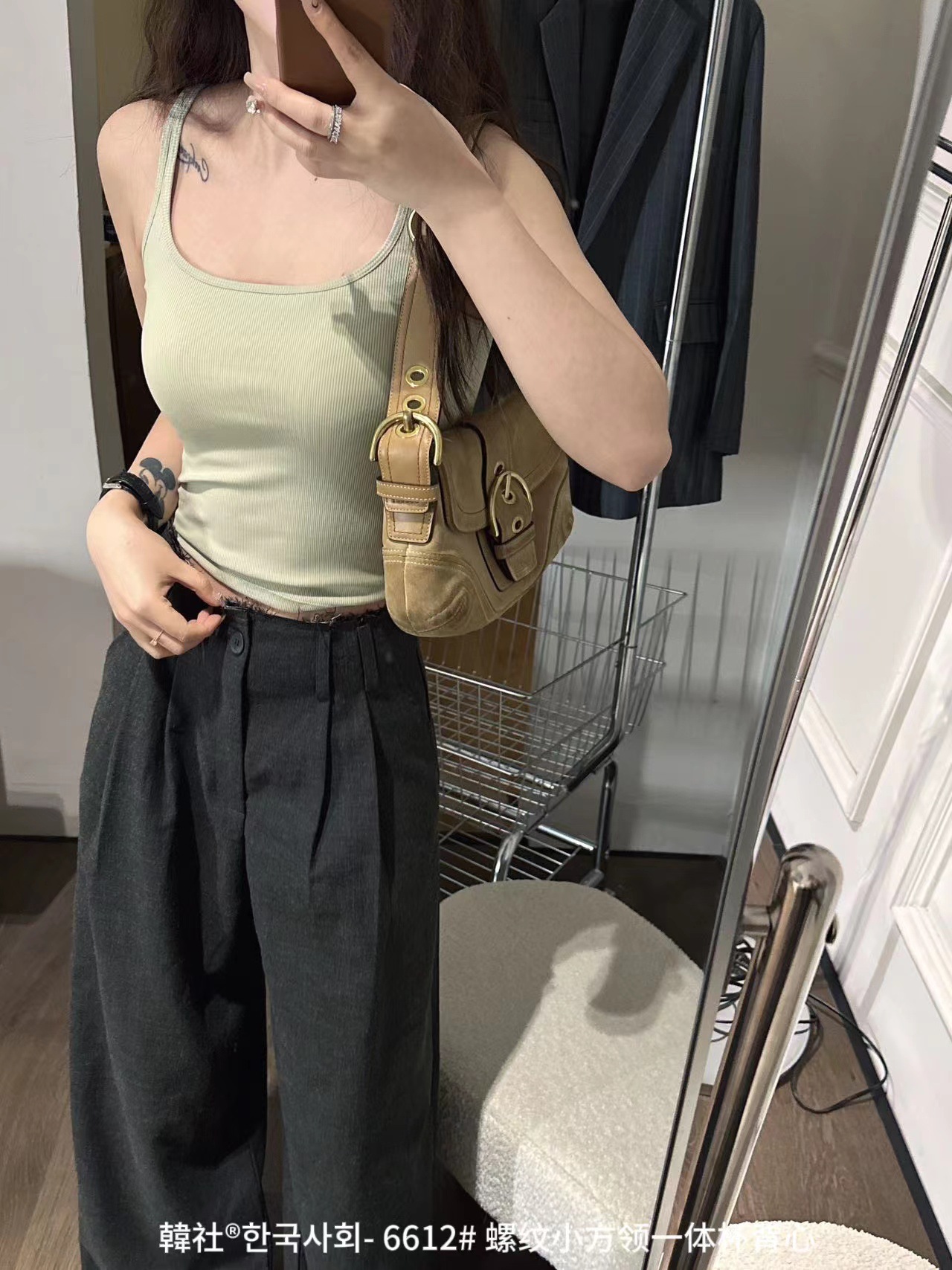한국식 실 작은 사각 칼라 원피스 컵 조끼 여성 봄과 여름 편안한 발효 콩 두부 커버 슬림 핏 단색 내복 뷰티 백 탑스토어 가기