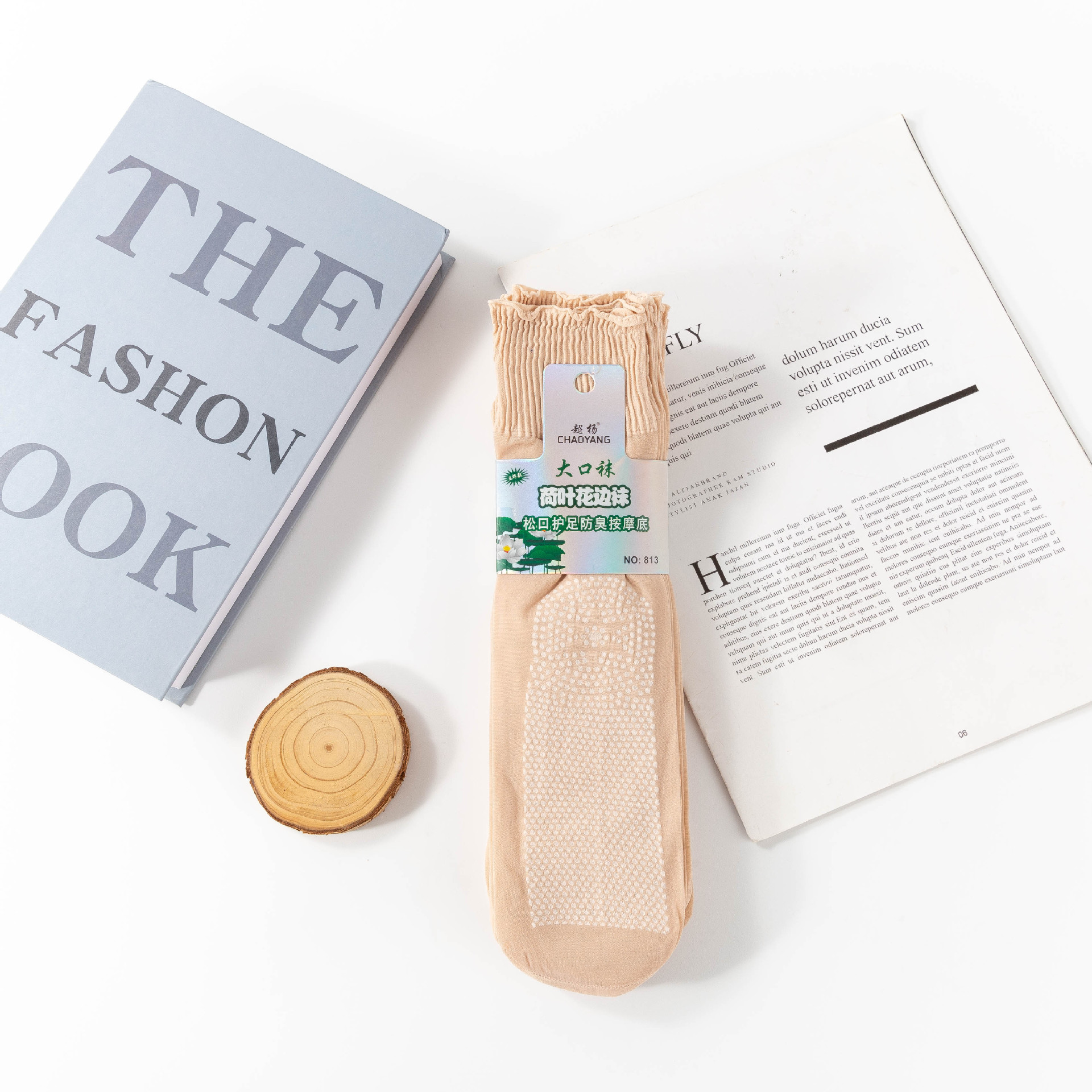 봄과 여름 느슨한면 바닥 미끄럼 스타킹 여성의 얇은 중간 송아지 여성의 짧은 스타킹 안티 걸림 발 마사지 양말 도매