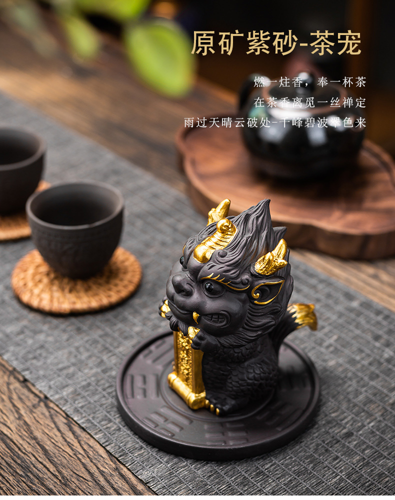 보라색 도자기 Kirin 차 애완 동물 장식 부티크 영양 차 테이블 차 테이블 장식 생선 탱크 풍경 하이 엔드 행운의 차 놀이 차 세트스토어 가기