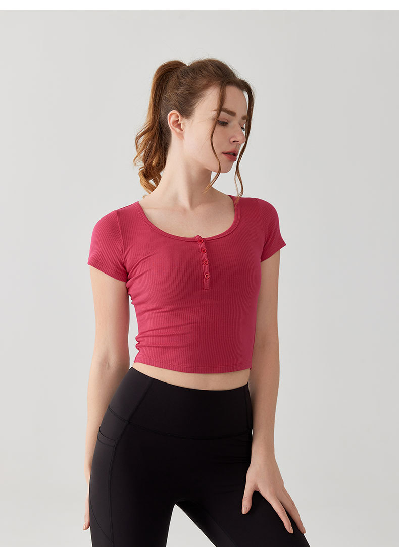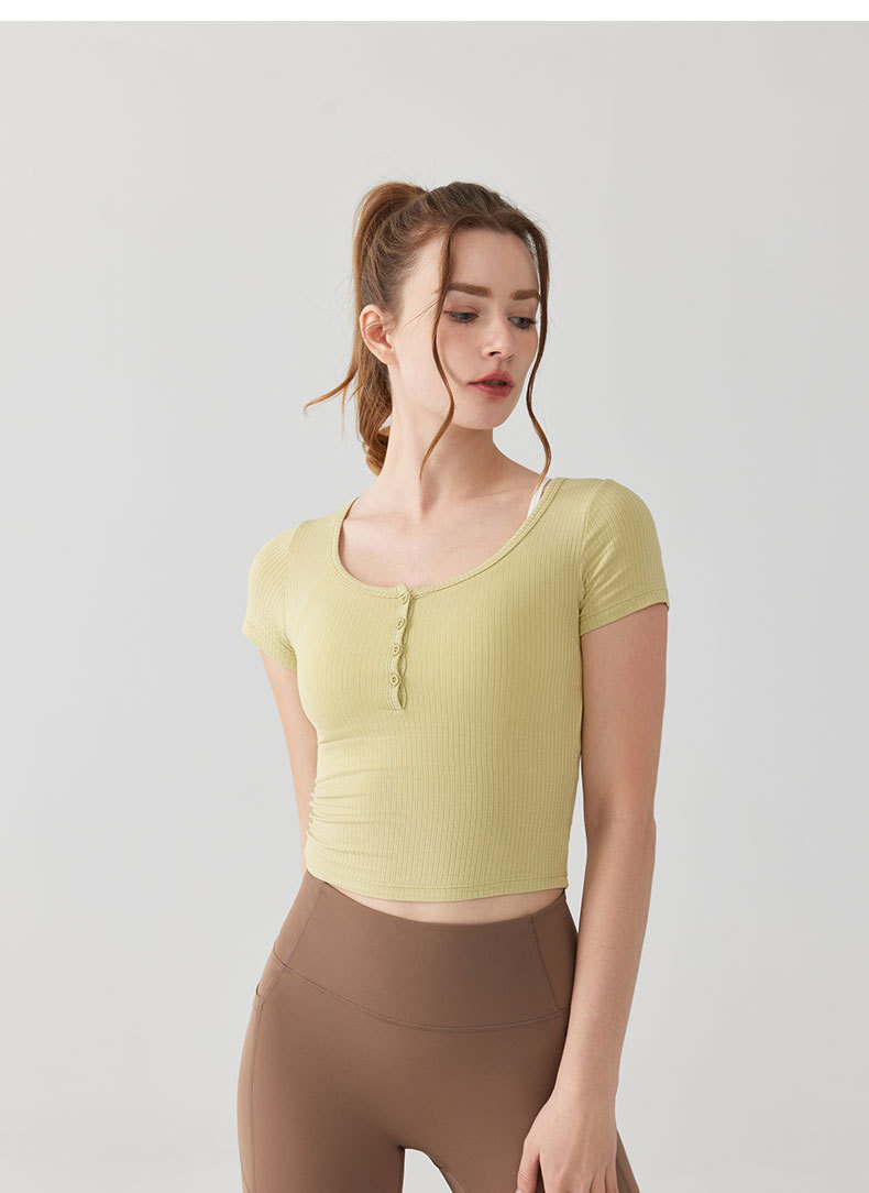 봄과 여름 새로운 프린세스 칼라 요가 반팔 여성용 슬림 핏 올 매치 아우터웨어 스포츠 탑 필라테스 훈련 운동복스토어 가기