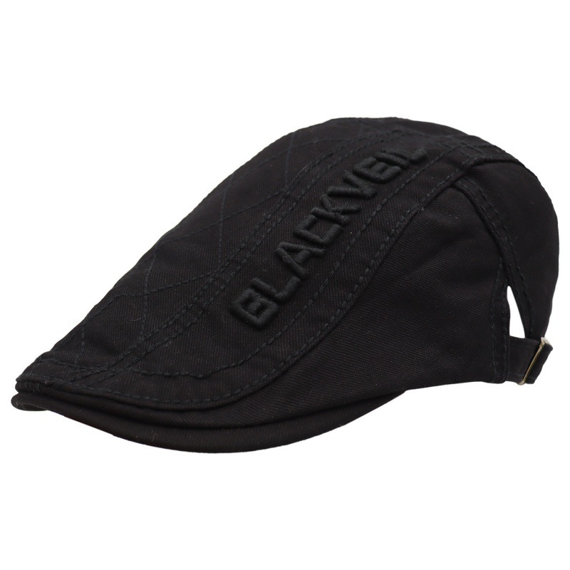 Yiyi 자수 로고 복고풍 앞으로 모자 남성과 여성의 베레모 짧은 테두리 모자 예술적 스타일 화가 모자 팔각형 모자