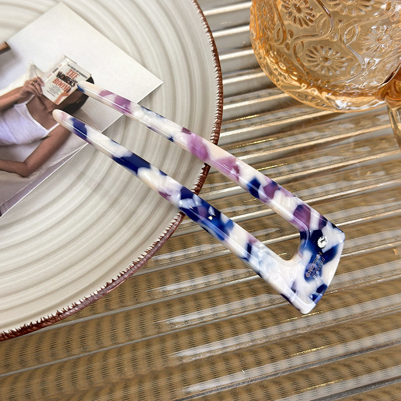 한국 스타일의 우아한 간단한 골드 라벨 편지 다이아몬드 내장 헤어핀 백 헤드 아세테이트 U 자형 헤어 컬러 패션 올 매치 젓가락