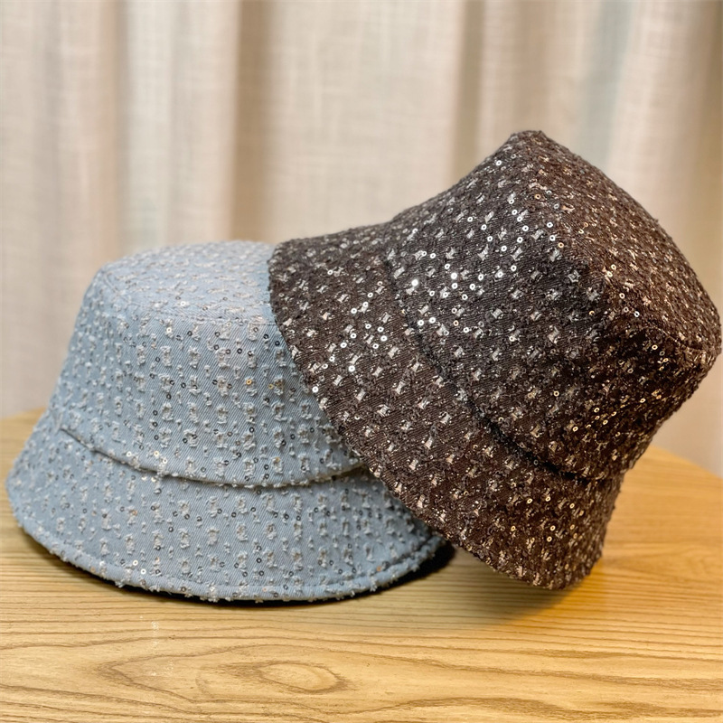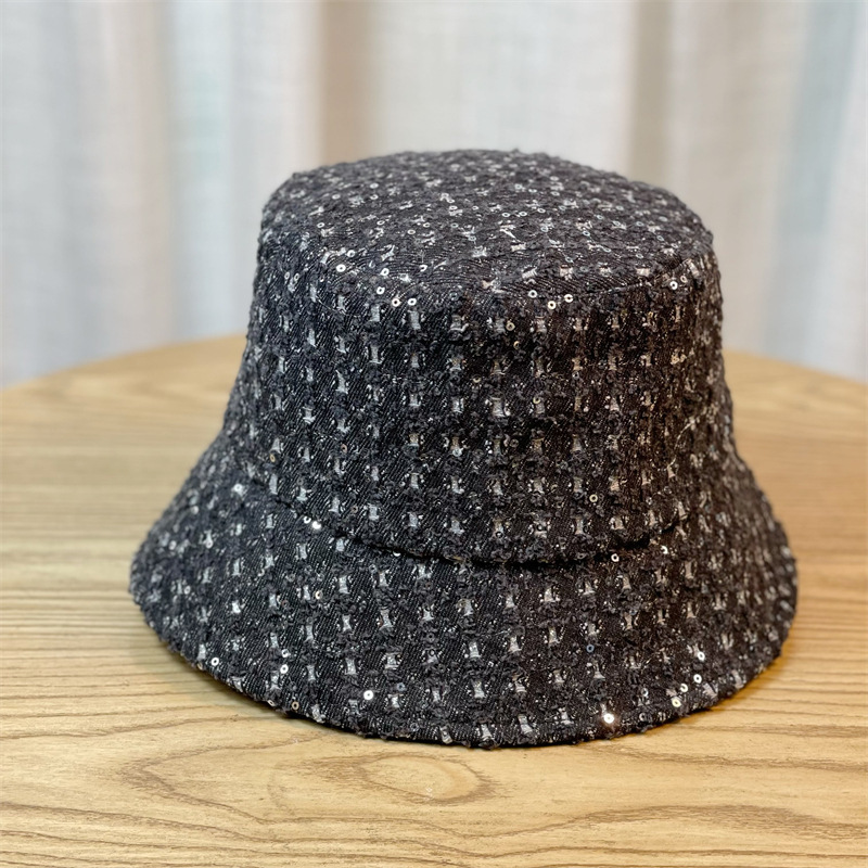 Yiyi 2024 새로운 스타일 풀 다이아몬드 올 매치 패션 플랫 탑 어부 모자 패션 브랜드 야외 봄과 가을 서양식 얼굴 모양의 작은 분지스토어 가기