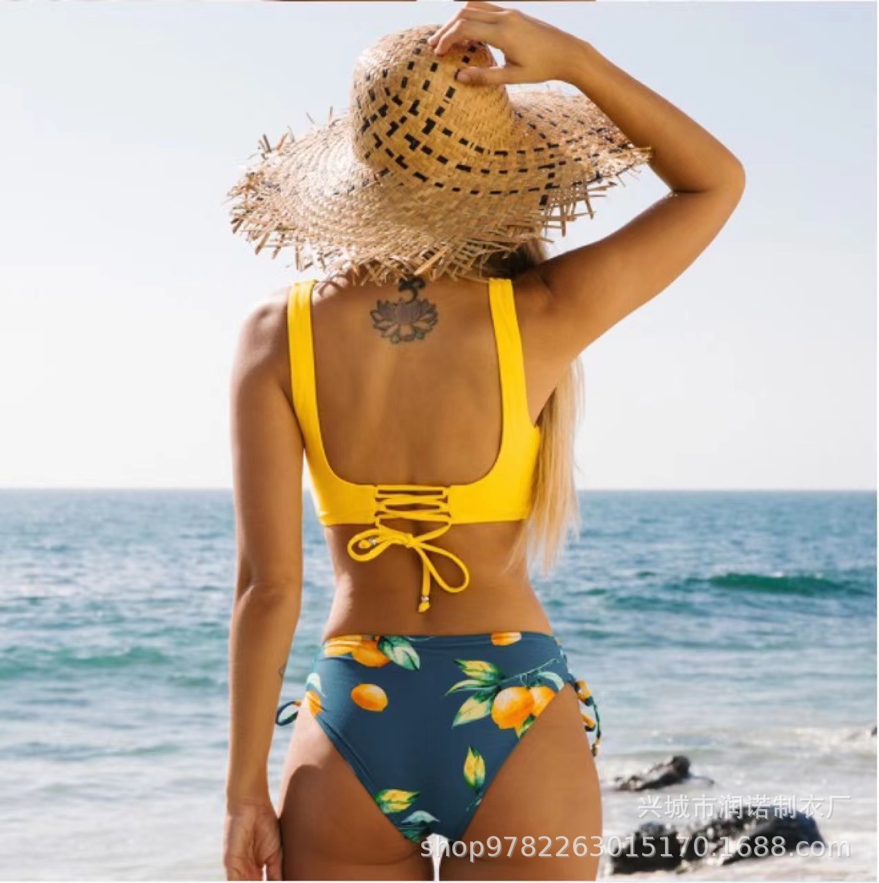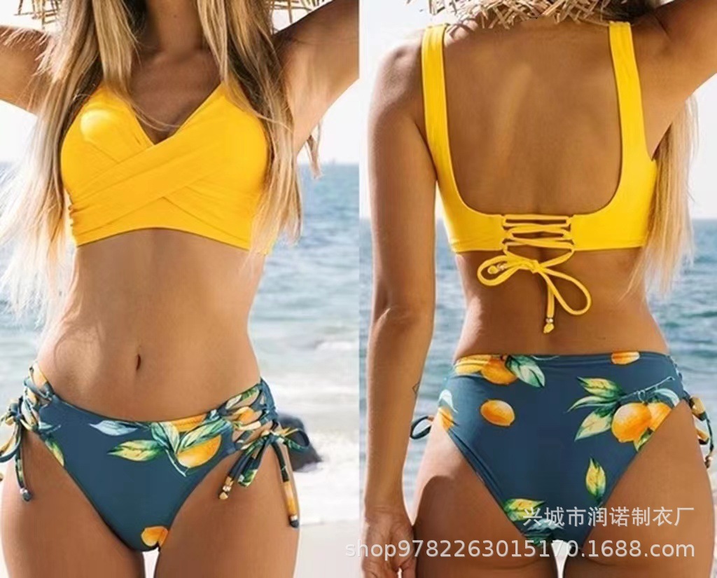 2024 아마존 새로운 비키니 수영복 유럽과 미국 재고 섹시한 노란색 멀티 컬러 비키니 해외 무역 수영복스토어 가기