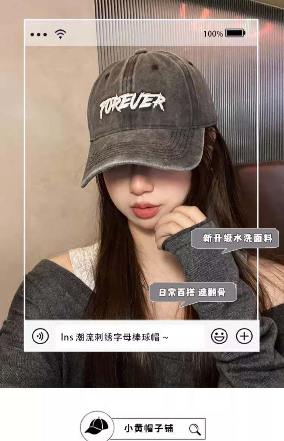 Yiyi, 새로운 패션 브랜드 문자 자수 소프트 탑 야구 모자 남성과 여성 올 매치 고민 세척 코튼 피크 캡 쇼스토어 가기