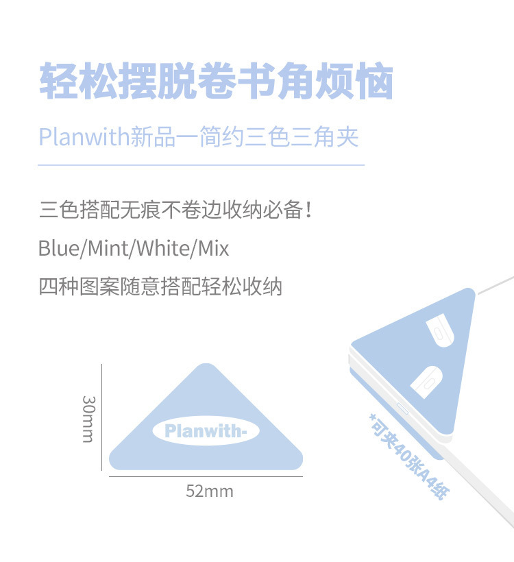 Planwith Storage 삼각형 클립 학생 데이터 저장 코너 클립 사무실 문구 지폐 바인딩 클립스토어 가기