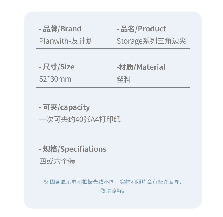 Planwith Storage 삼각형 클립 학생 데이터 저장 코너 클립 사무실 문구 지폐 바인딩 클립