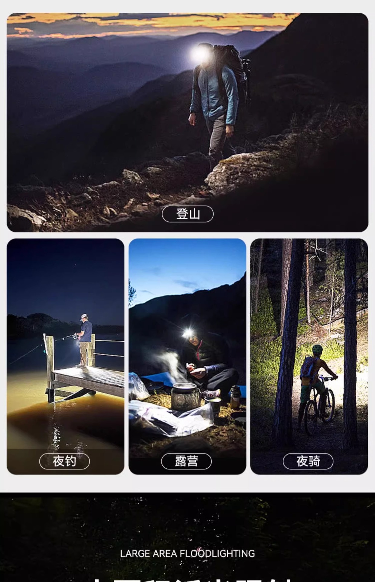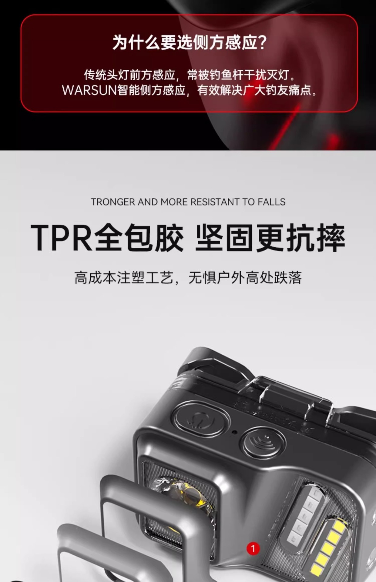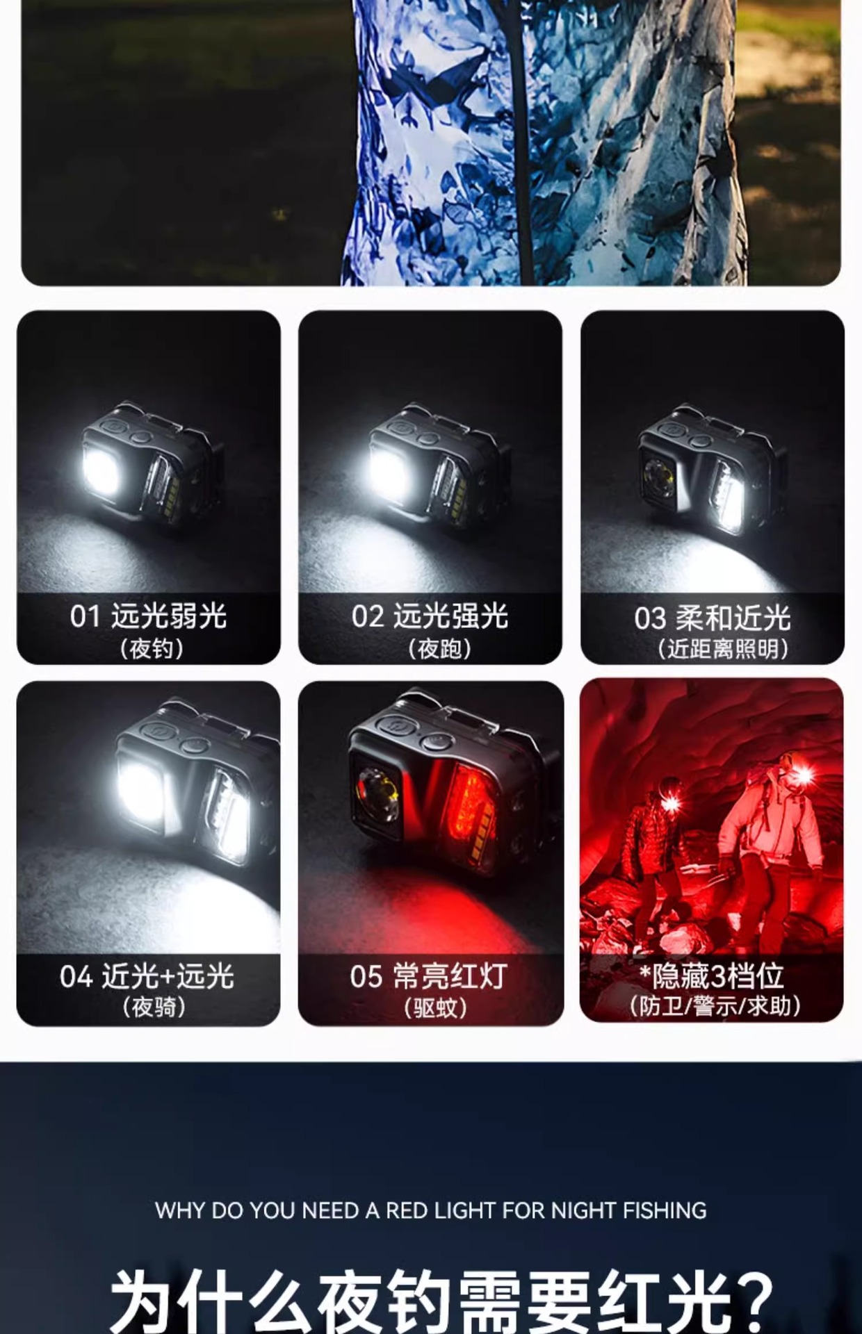 Wallson w08s 헤드라이트 낚시 특수 강한 빛 충전 슈퍼 밝은 야외 등산 야간 낚시 헤드셋 내구성
