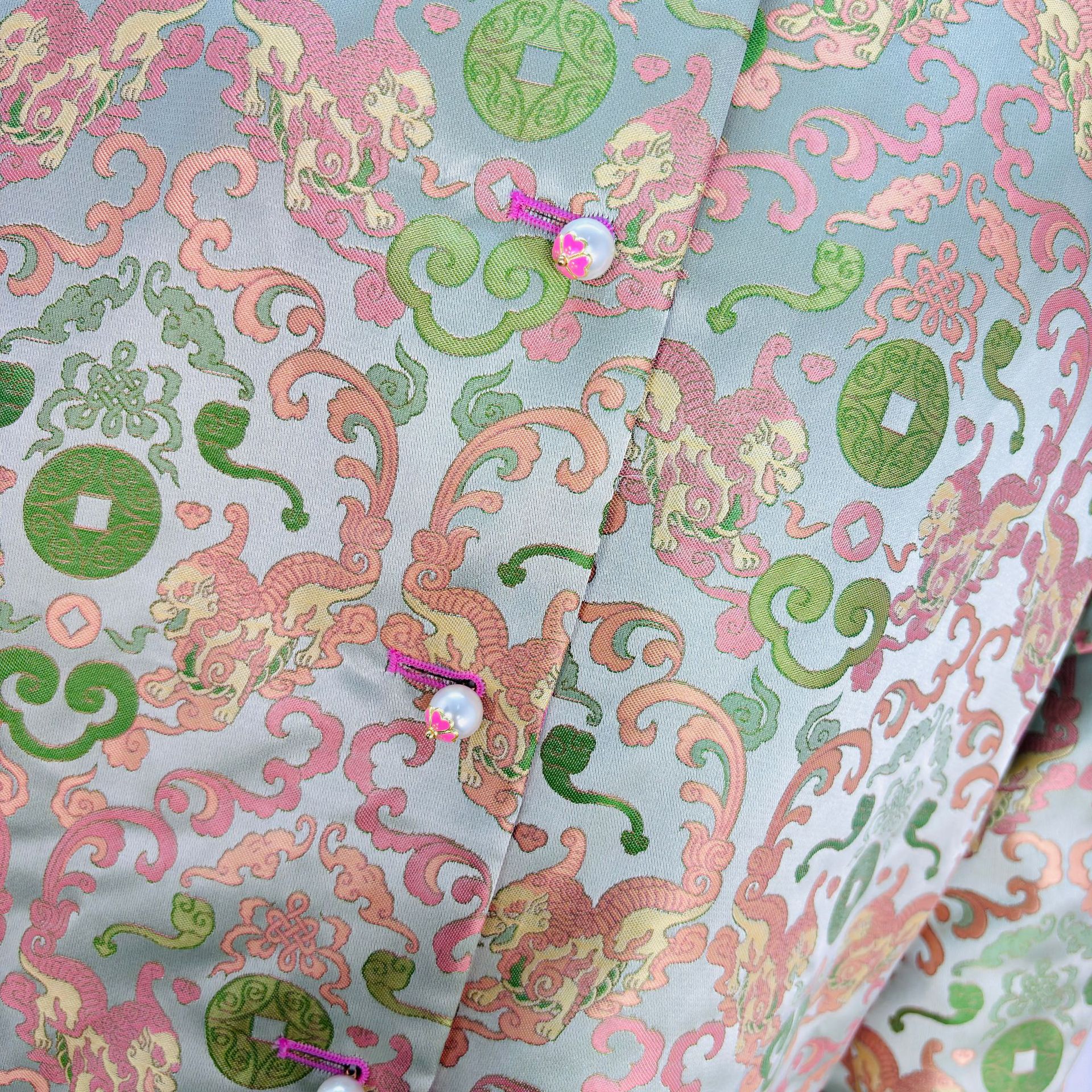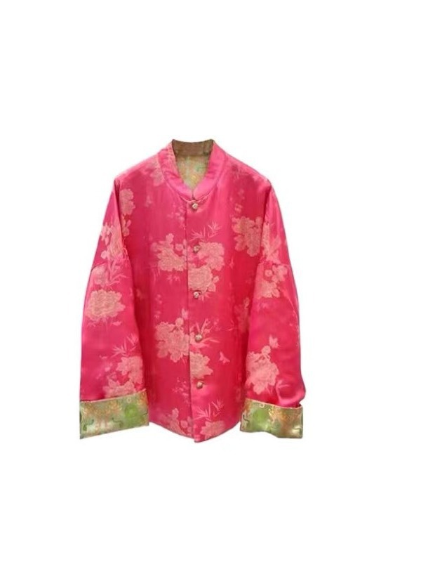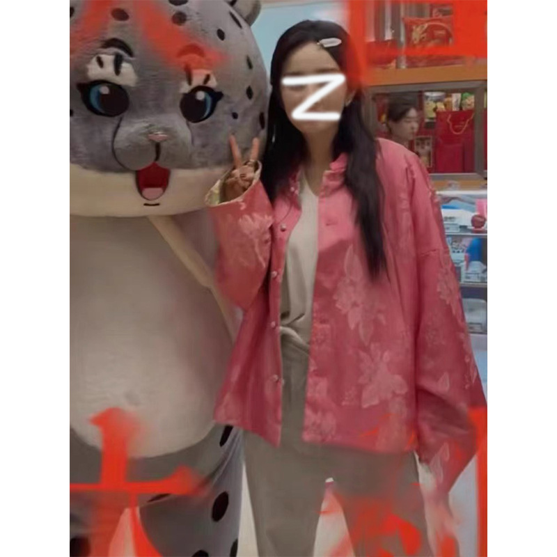 양미의 같은 스타일 2024 봄 새로운 중국 스타일 탕 스타일 코트 버클 탑 핑크 자카드 여성용 양면 재킷스토어 가기