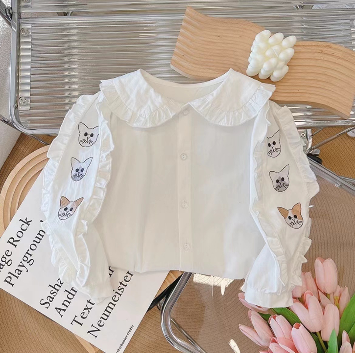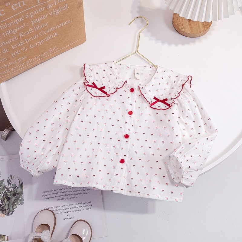 한국 어린이 착용 봄 소녀 셔츠 소녀의 새 만화 자수 레이스 긴 소매 셔츠 공주 스타일 착용