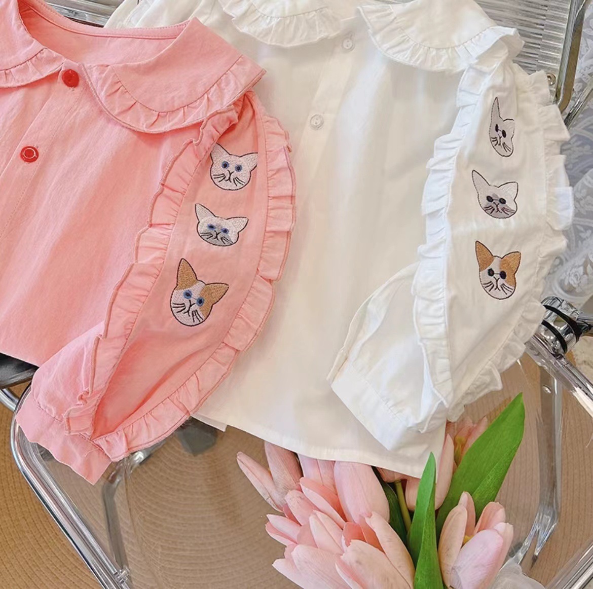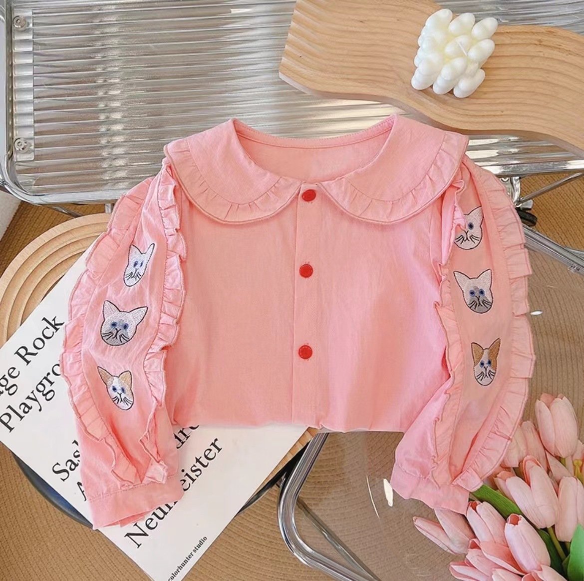 한국 어린이 착용 봄 소녀 셔츠 소녀의 새 만화 자수 레이스 긴 소매 셔츠 공주 스타일 착용스토어 가기