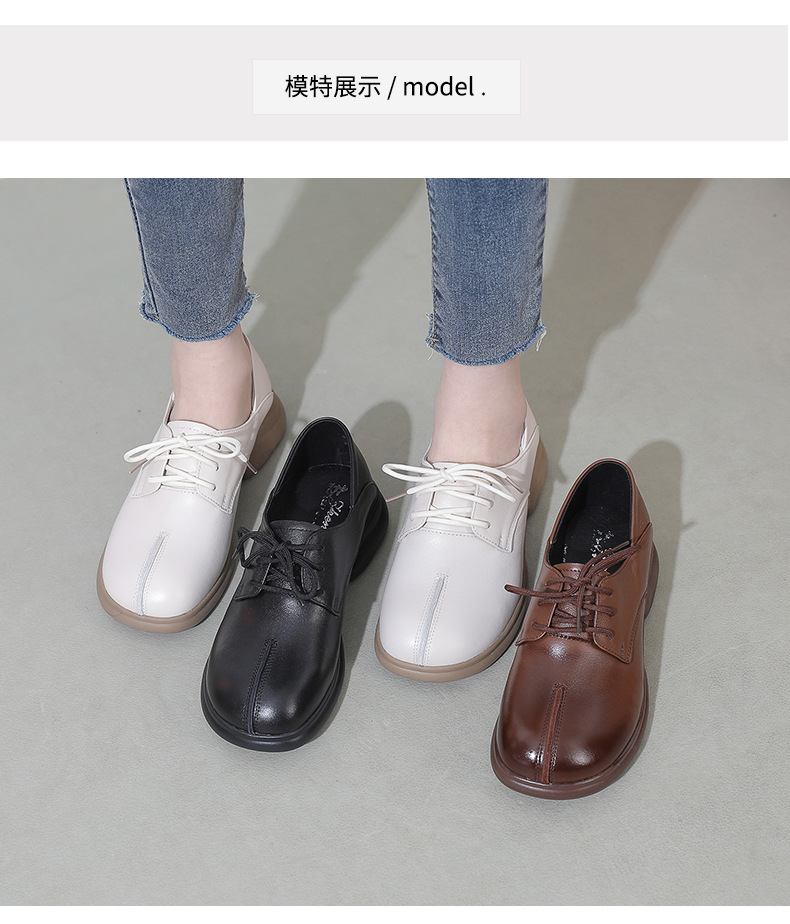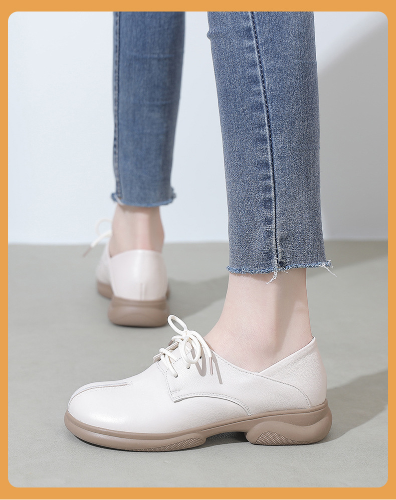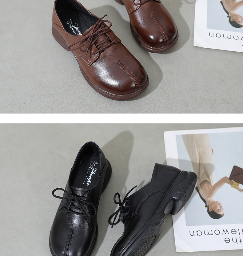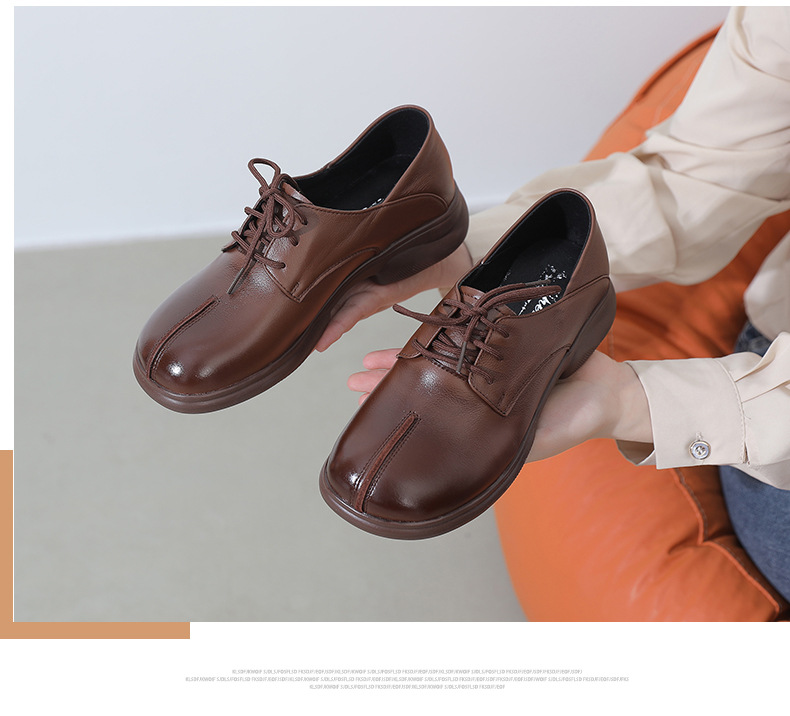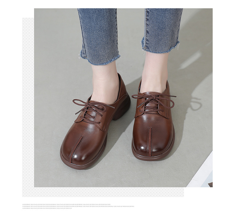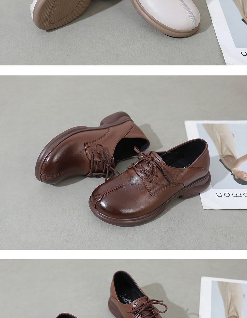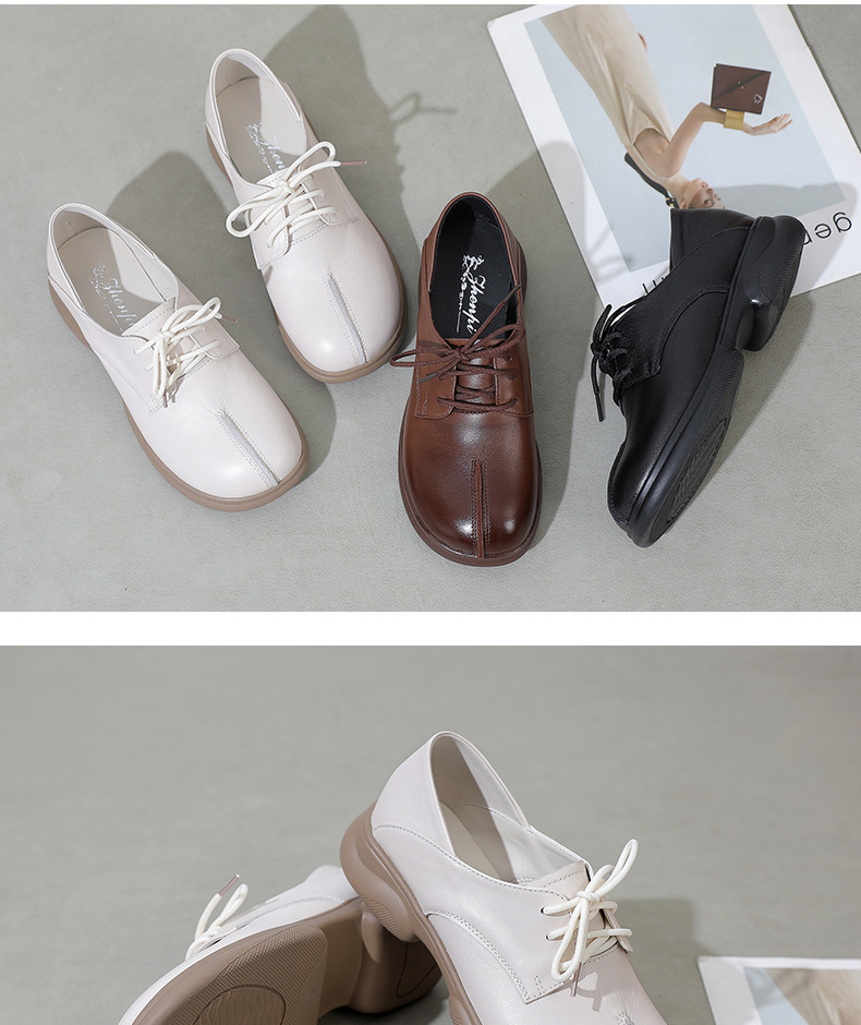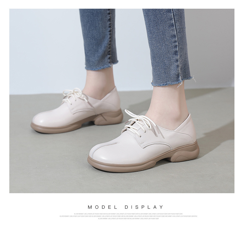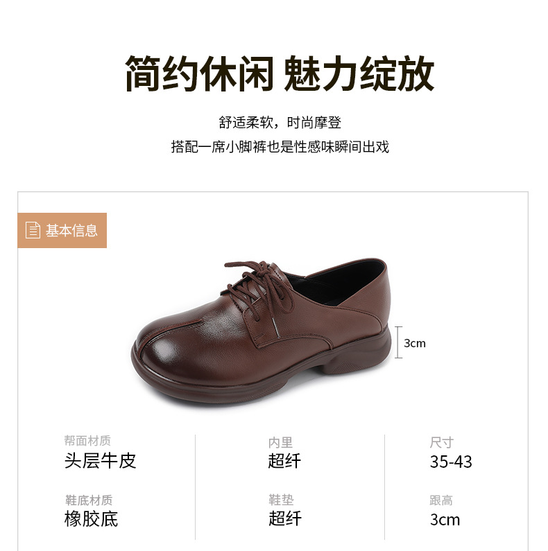 2024 봄 새로운 정품 가죽 여성 단층 신발 두꺼운 뒤꿈치 작은 두꺼운 바닥 부드러운 바닥 레이스 업 탑 레이어 소 가죽 복고풍 대형 신발스토어 가기