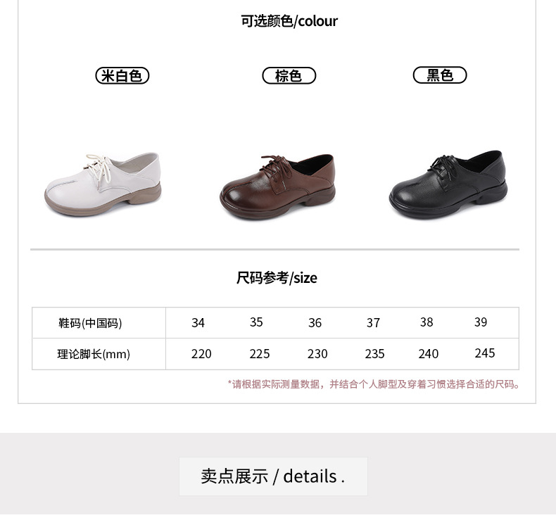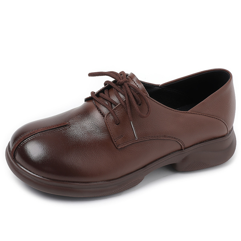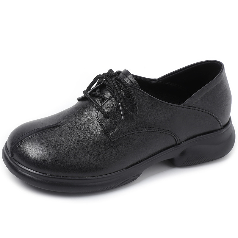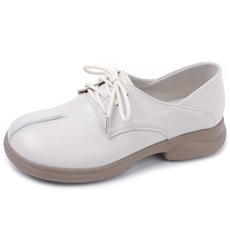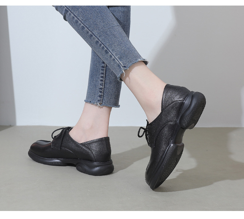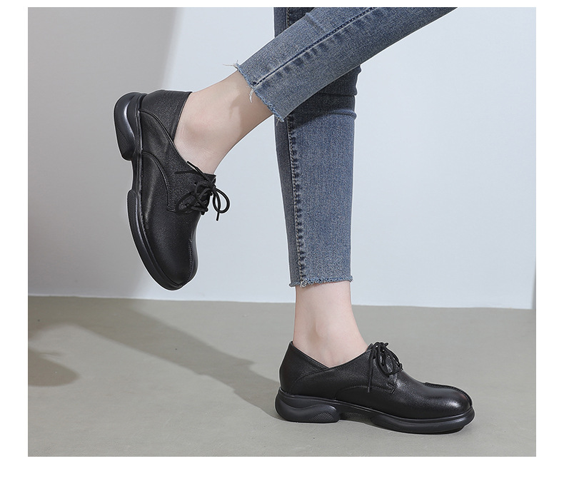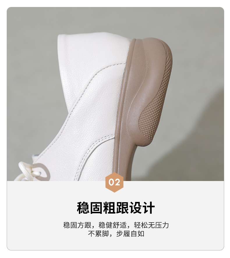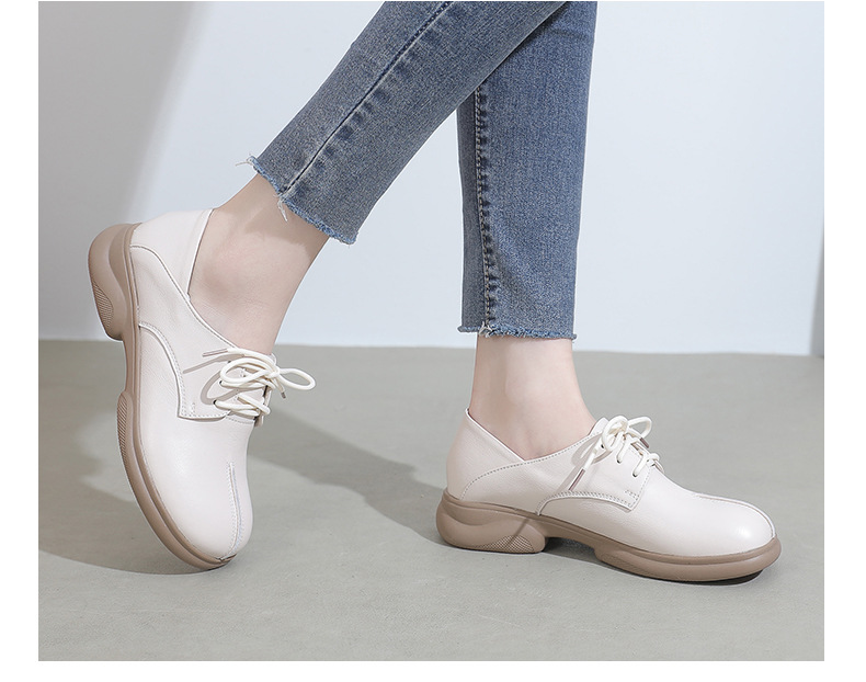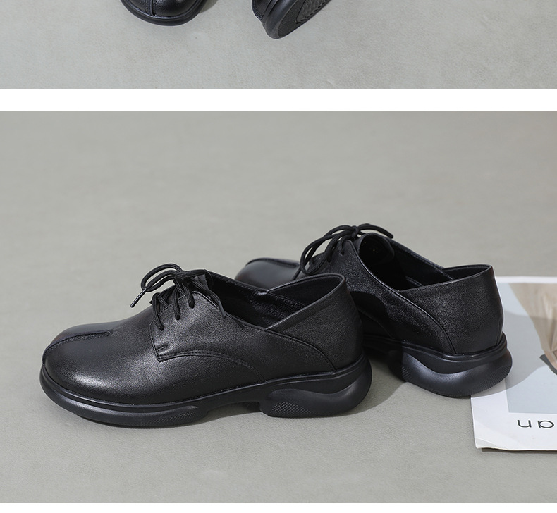 2024 봄 새로운 정품 가죽 여성 단층 신발 두꺼운 뒤꿈치 작은 두꺼운 바닥 부드러운 바닥 레이스 업 탑 레이어 소 가죽 복고풍 대형 신발스토어 가기