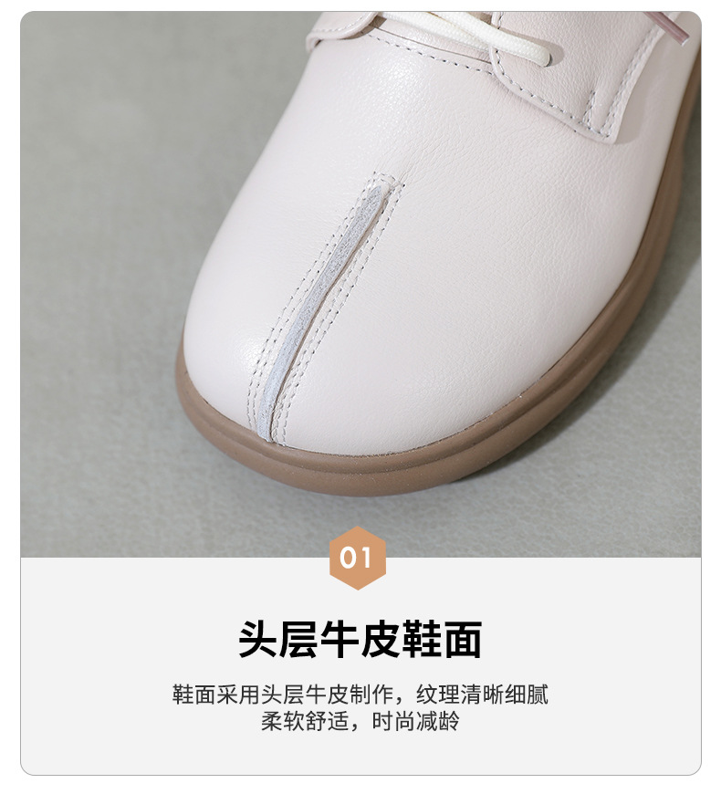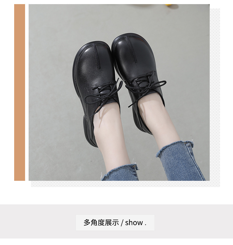 2024 봄 새로운 정품 가죽 여성 단층 신발 두꺼운 뒤꿈치 작은 두꺼운 바닥 부드러운 바닥 레이스 업 탑 레이어 소 가죽 복고풍 대형 신발