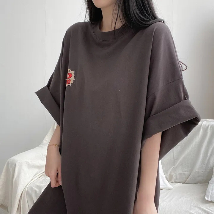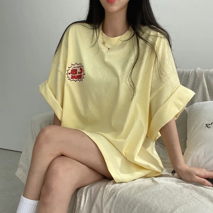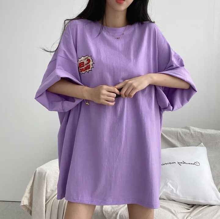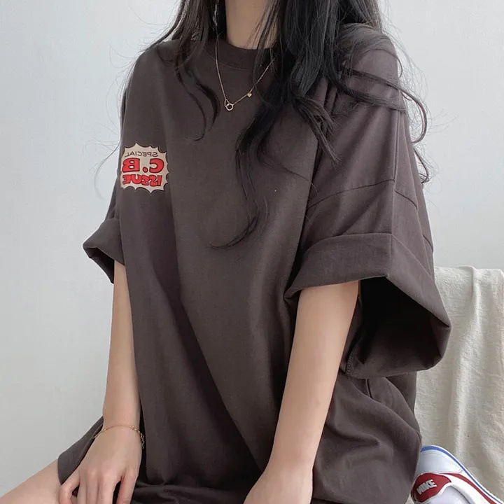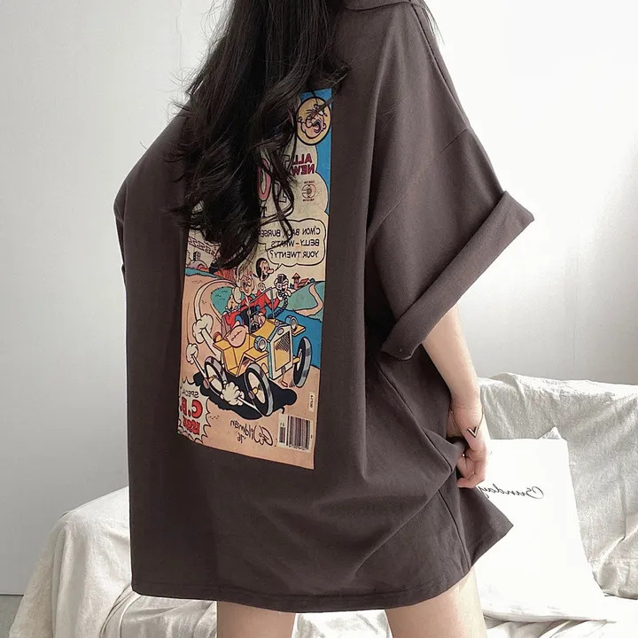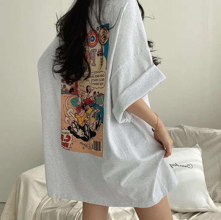 반소매 패턴 일본 티셔츠 여성 100 면 만화 짧은 소매 한국 스타일 오버 사이즈 여름 느슨한 틈새스토어 가기