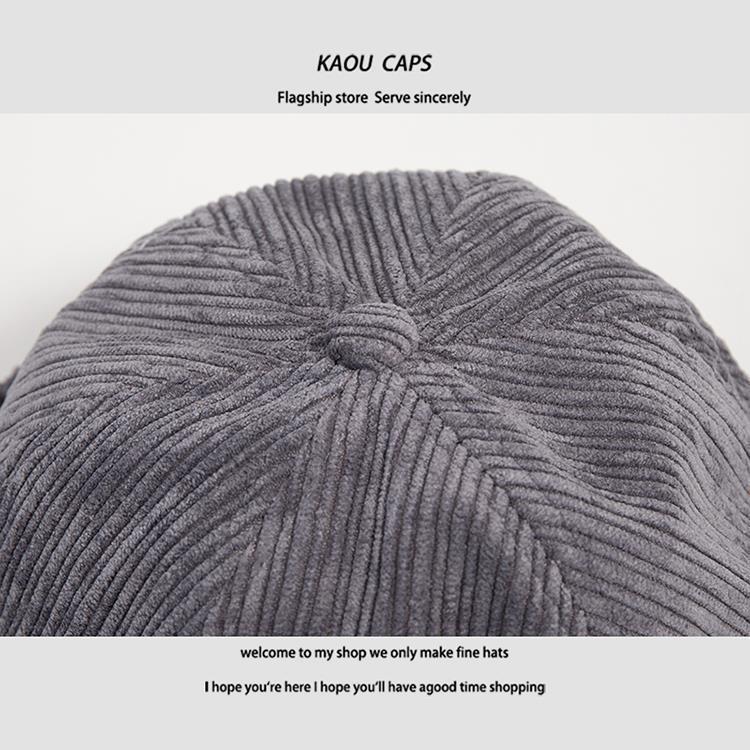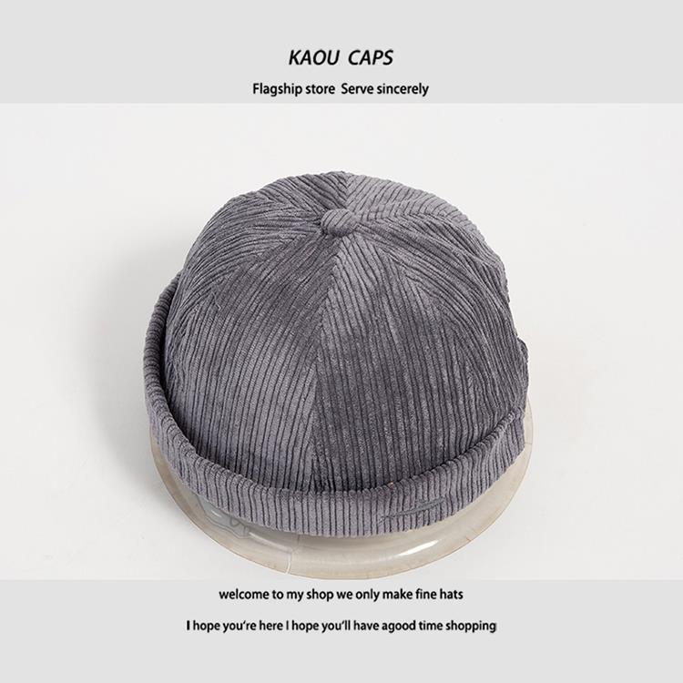 이순신 모자 남자의 가을과 겨울 Yupi Street 코듀로이 바닥 모자 커플 복고풍 물고기 수 놓은 무자비한 멜론 모자
