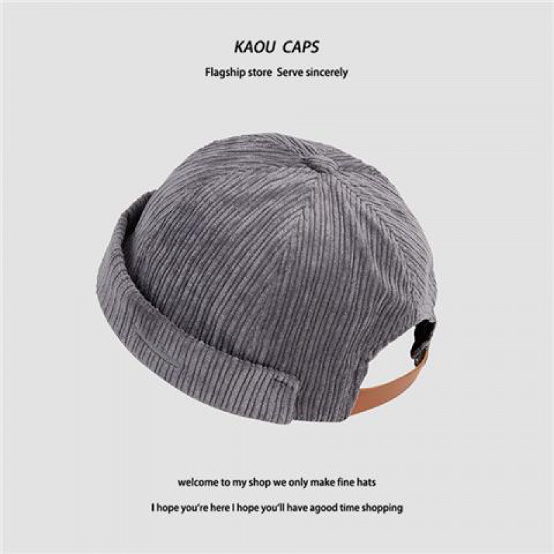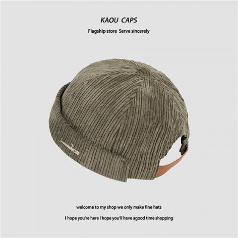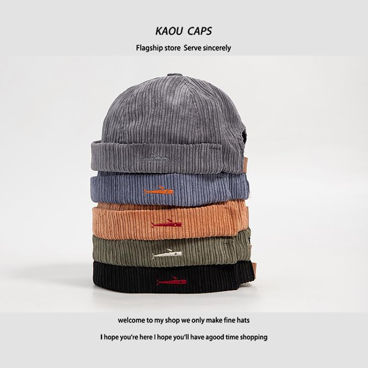 이순신 모자 남자의 가을과 겨울 Yupi Street 코듀로이 바닥 모자 커플 복고풍 물고기 수 놓은 무자비한 멜론 모자스토어 가기