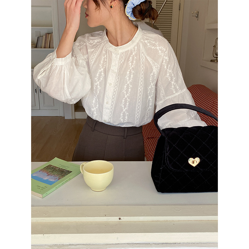 3th Morning 남프랑스 가을 디자인 레이스 랜턴 슬리브 셔츠 초가을 신상품 ZY1506