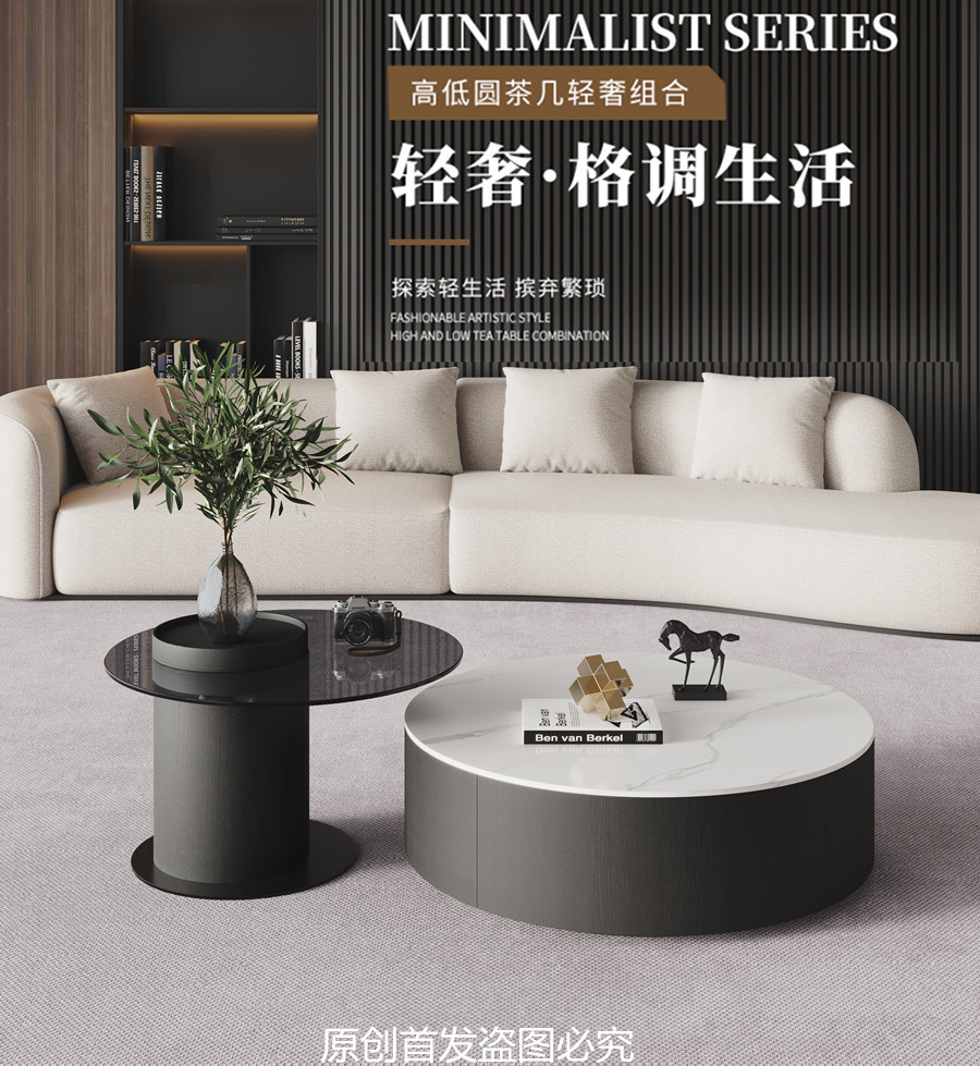 차 테이블 메쉬 보드 여러 그룹의 아파트 가구 작은 아파트 바위 고급 크기 조합 라운드 작은 가정용 티 테이블 여러 단단한 나무 빛스토어 가기