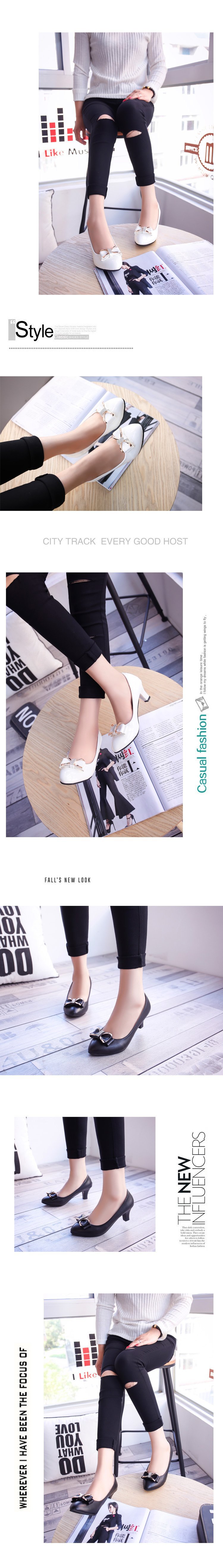 2024 봄과 가을 로우 컷 특허 가죽 싱글 레이어 신발 여성용 달콤한 활 라운드 토 블랙 하이힐 미드 힐 청키 힐 가죽 신발스토어 가기