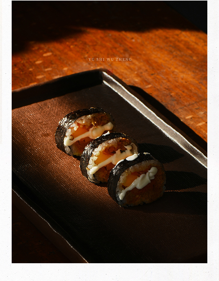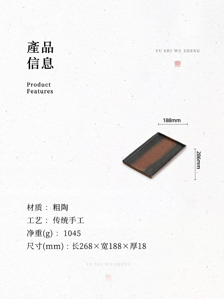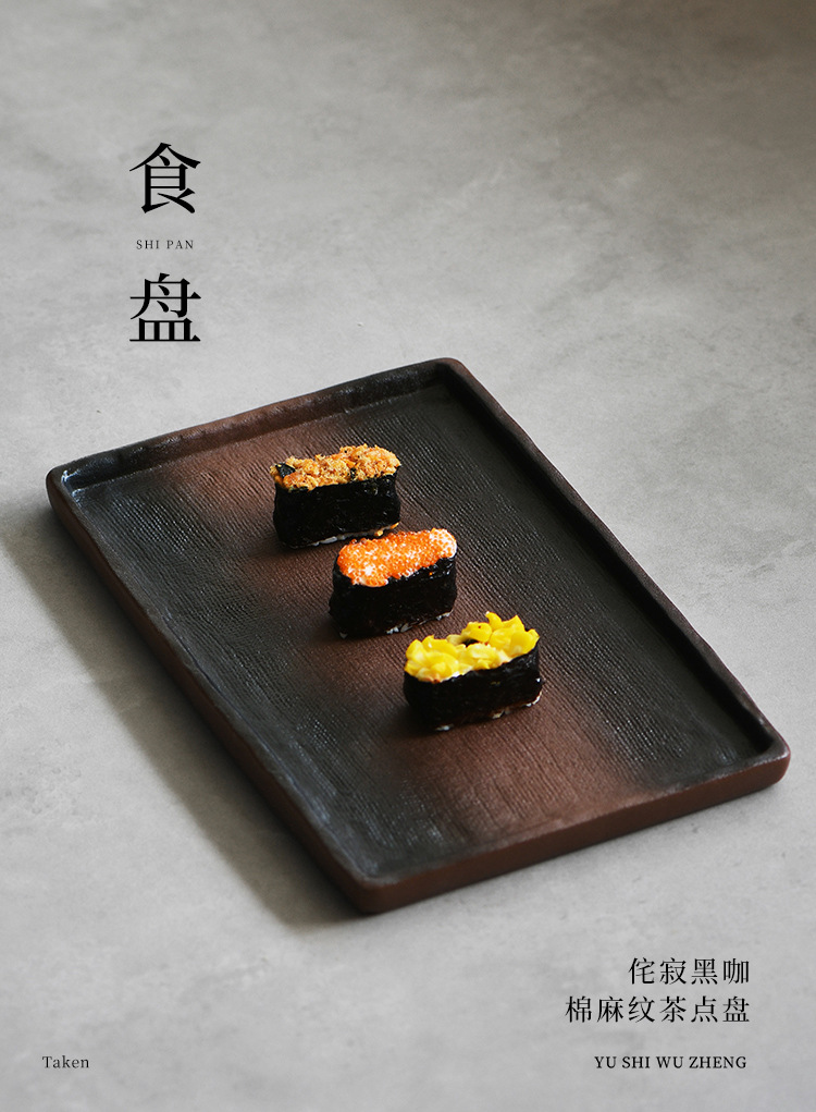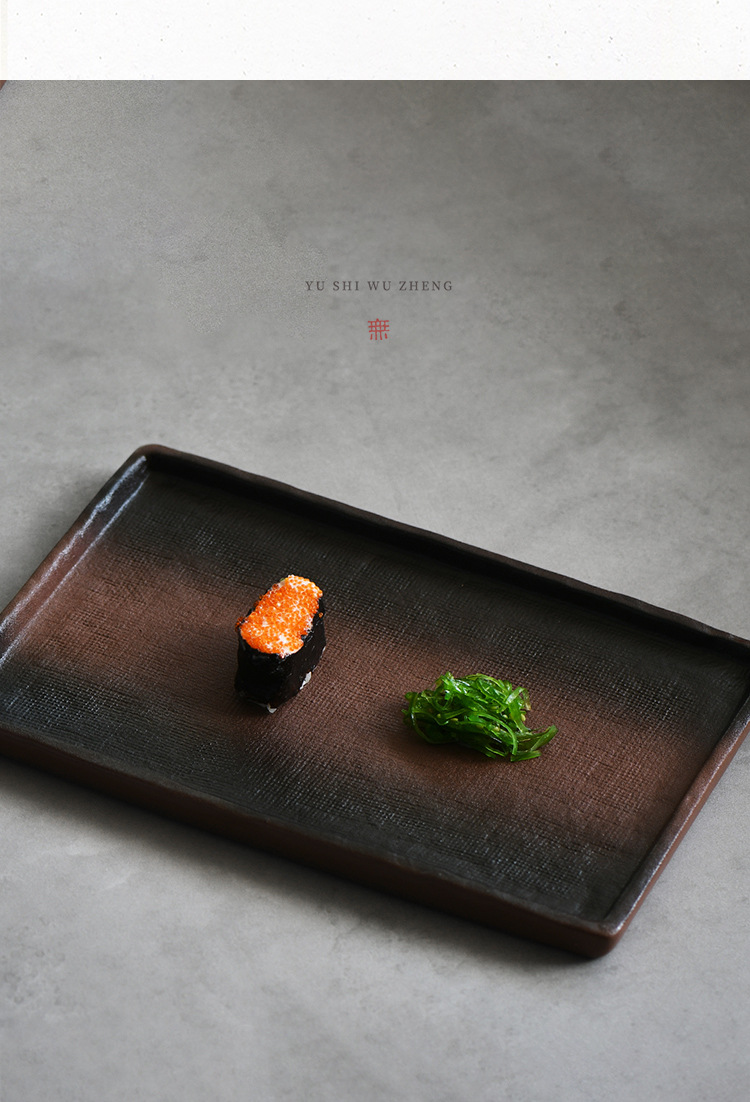 극단적 인 빈곤 스타일 손으로 만든 석기 접시 일본 식당 스시 플레이트 직사각형 세라믹 마른 거품 접시 티 테이블