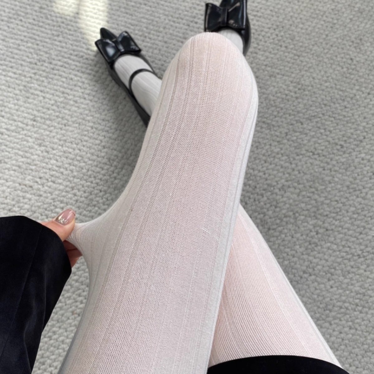 봄 miu 스타일 얇은 반투명 팬티 스타킹 세로 줄무늬 여성을위한 단색 바닥 양말에 한국 스타일 슬리밍